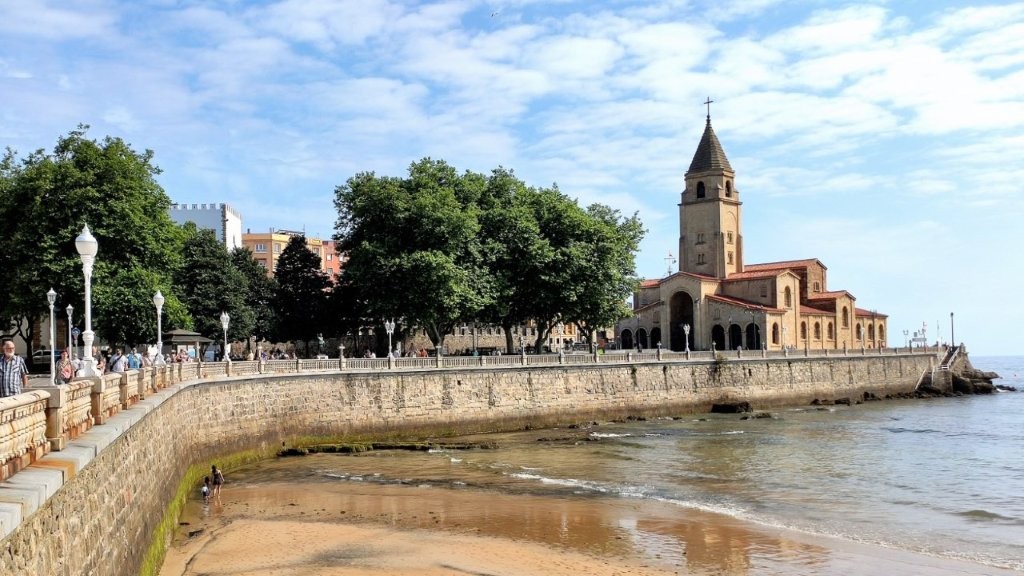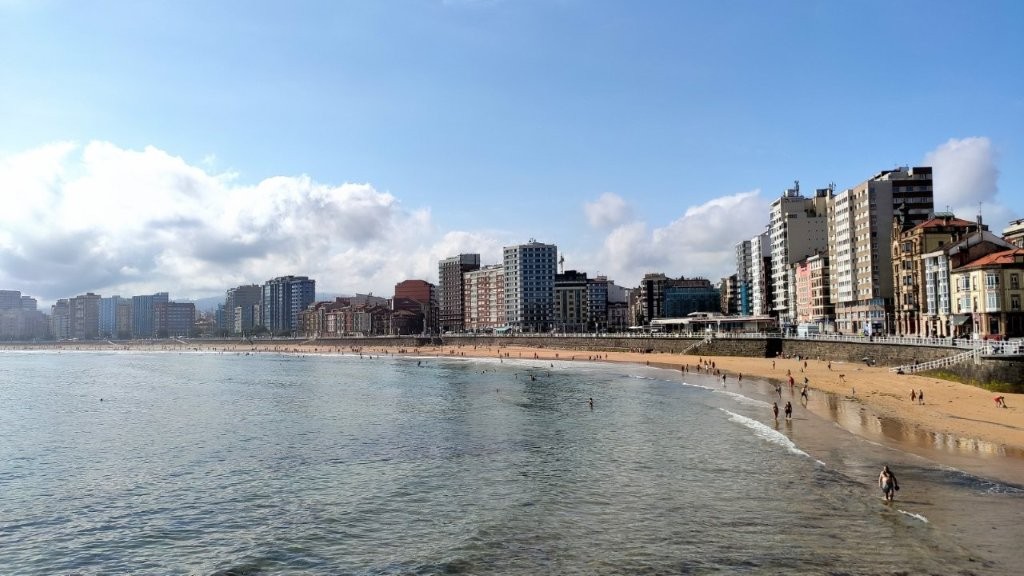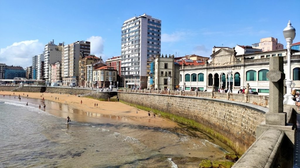 Zunächst der 1 ½ km lange muschelförmige Strand San Lorenzo, begrenzt von der von den Einheimischen liebevoll „Paseo del Muro“ genannten Flaniermeile, Durchgangsstraße und Häuserzeile. Sie beginnt mit der „Pescaderia Municipal“, einer knapp 100 Jahre alten Fischhalle. Früher mit 142 Fisch- und Meeresfrüchteständen ausgestattet. Heute mit einer mir nicht bekannten Anzahl kommunaler Büros. Man kann nur hoffen, dass sich der vielen nicht passende Fischgeruch verflüchtigt hat.