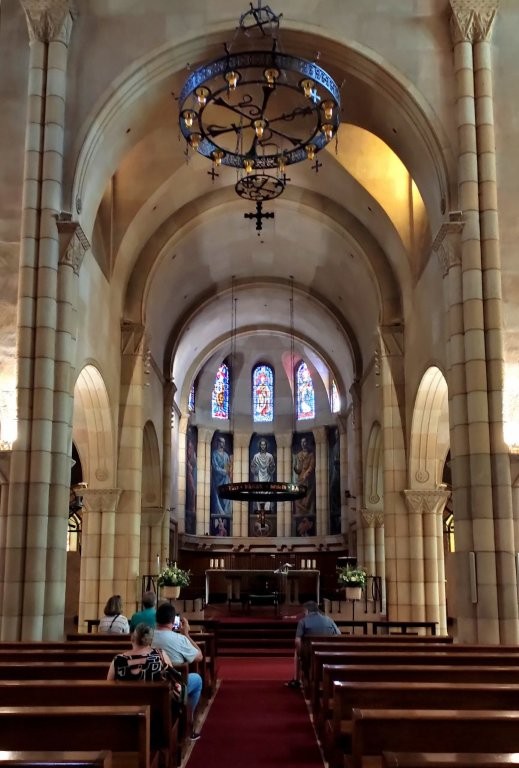 Das Gotteshaus wurde vor 70 Jahren geweiht, nachdem sie anstelle der Vorgängerkirche aus dem 15. Jahrhundert neu errichtet wurde. Die alte Kirche erlitt dasselbe Los wie viele alte historische Gebäude der Stadt – sie wurde im Bürgerkrieg zerstört. Während man Mitte des letzten Jahrhunderts in Deutschland Kirchenneubauten im modernen Stil errichtete, schrieben die Frankisten den historischen Stil, in diesem Fall Romanik/Vorromanik, vor, worüber die katholische Kirche nicht unglücklich war.