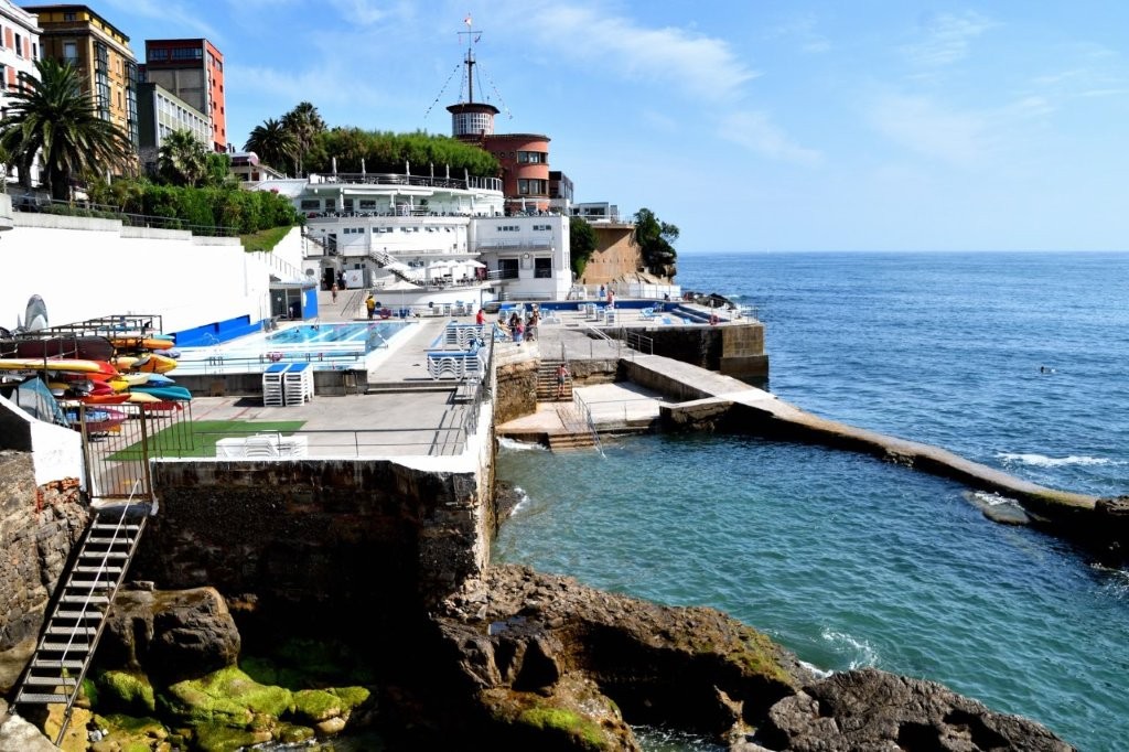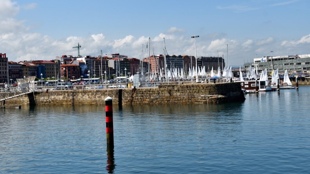 Nach dem Kirchenbesuch folgten wir der Promenade am Fuße des Hügels Santa Catalina. Dort erspähten wir die phantastisch gelegenen Gebäude des Real Club Astur de Regatas