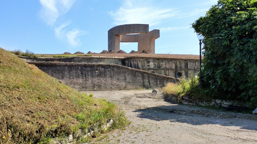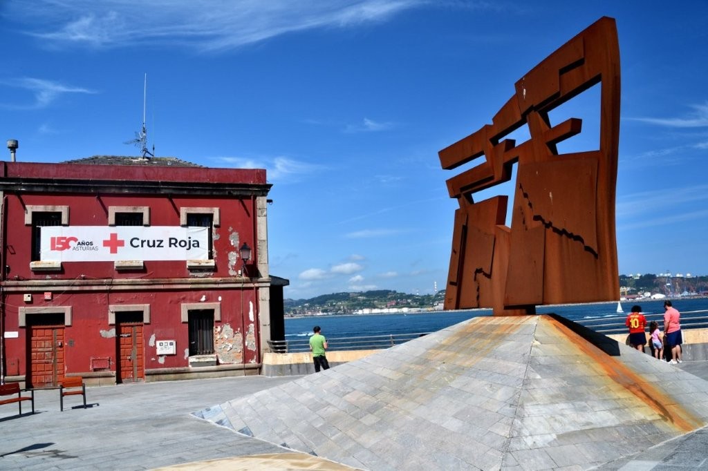 Unterhalb der Skulptur befinden sich Reste eines Forts, mit dem die Bucht von Gijón verteidigt werden sollte.