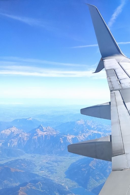 Erbarmen, Wecker – 4.30 Uhr! Aber wir hatten ihm ein Schnippchen geschlagen. Wir waren schon vorher wach! Kein Wunder, denn unser Urlaub begann. Unser Sohn fuhr uns zum Flughafen. Web Check-in war bereits erledigt; die Koffer wurden wir beim Drop-Off los und zu unserem vorab gebuchten Sicherheits-Zeitfenster war wenig los. Dafür startete unser Flug mit 15 Minuten Verspätung. Kein Problem – Rückenwind und Turbo sorgten für eine pünktliche Landung. Der Flug war übrigens angenehm ruhig – der Ausblick auf die Alpen phänomenal: