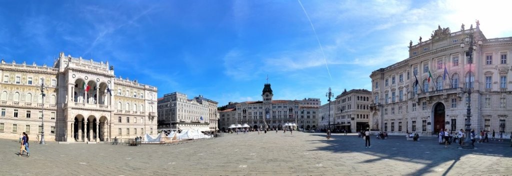 die lange Molo Audace, die Piazza Unità d'Italia, die weite, die Bucht umsäumende Promenade.