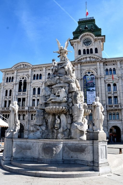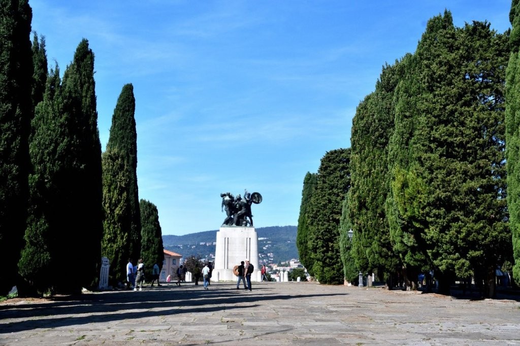 Integriert im Park der Erinnerung (an die Gefallenen) zeigt es eine Gruppe von fünf männlichen Figuren im damals typischen mussolinischen Gigantismus. Na ja, Triest bot auch Eindrucksvolles. Damit meine ich nicht die als Römer verkleidete Gruppe.