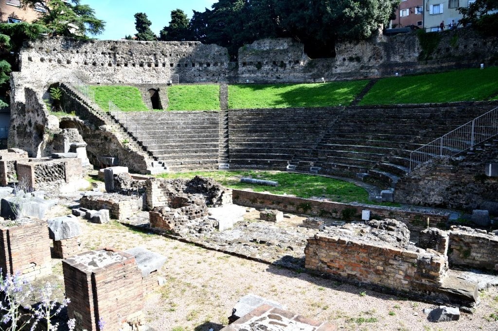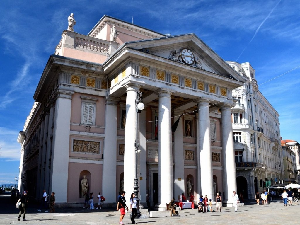 Ab Ende des 1. Jahrhunderts hatten bis zu 6.000 Einwohner der Stadt an den in diesem römischen Theater gebotenen Aufführungen beigewohnt. Damals lag der Standort außerhalb der Stadt, die sich im Laufe der Jahrhunderte vergrößerte. Das Theater wurde nach und nach überbaut; erst als unter Mussolinis Herrschaft Teile der Altstadt Triests abgerissen wurden, kam es wieder zu Vorschein.