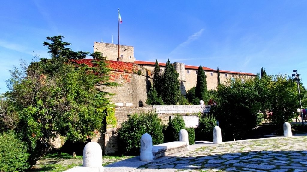 Kunstvolle Fresken und byzantinische Mosaiken verwöhnten die Augen, die sich nach einiger Zeit wieder an die gleißende Sonne gewöhnen mussten. Bis zum Castello di San Giusto war es nicht weit. Mit der in unmittelbarer Nähe gelegenen Kathedrale bildet es auf der höchsten Erhebung Triests DAS Wahrzeichen der Stadt. Nach 160 Jahren Bauzeit kam in der ersten Hälfte des 17. Jahrhunderts ein Prachtstück heraus. Selbstverständlich dient die Burg heute nicht mehr militärischen Zwecken. In ihr sind ein Schloss- und Waffenmuseum untergebracht; außerdem ist in alten Gebäudeteilen eine Sammlung von 130 Steindenkmälern vorwiegend aus der römischen Zeit untergebracht.