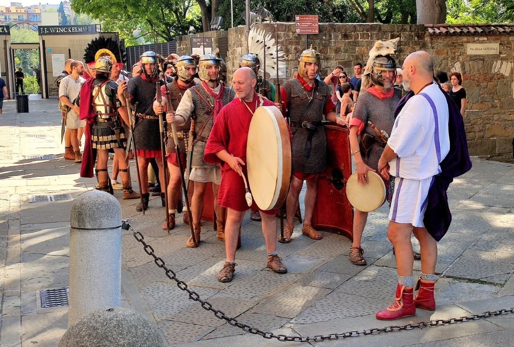 Gladiatoren, Soldaten, Musiker, einfache Bürger, die auf ihrem Auftritt auf dem Forum Romanum warteten. Alles für die Touristen!