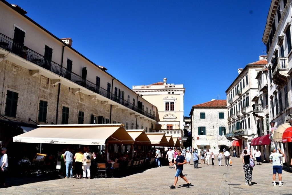 Dieser Tag gehörte wieder der Kultur. Gefühlt besuchten wir jede der kreuz und quer durch die Altstadt führenden Straßen und Gassen. Schon die ersten Eindrücke bestätigten, dass dieser Ort zu Recht als UNESCO-Weltkultur- und Naturerbe gilt. Verwinkelte Gassen und Plätze. Alte, meist sehr gut gepflegte Häuser in unterschiedlichen Baustilen. Für die Größe des Ortes unzählige, verschiedenen Glaubensrichtungen angehörige Kirchen. Umringt von einer Stadtmauer. Für die Optik dahinter die beeindruckenden, bis zu 1894 Meter hohen Orjen- und Lovćengebirge.
