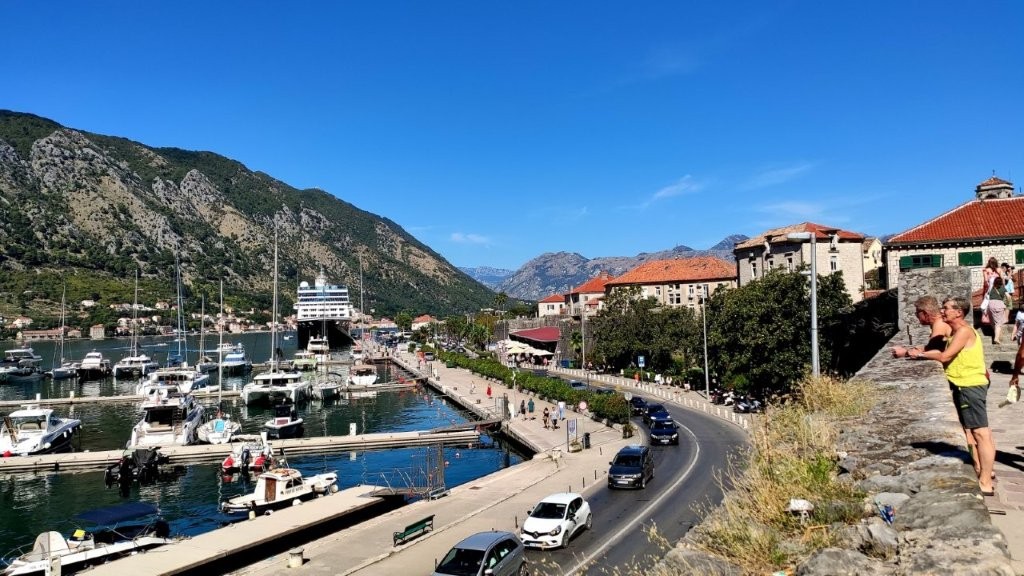 Foto 19Mit einem leichten Grinsen ein Blick nach unten. Der für Kotor in den Hauptsaisonzeiten übliche Stau - wir waren schneller als die Autos, auch wenn wir nur sehr langsam spazierten …