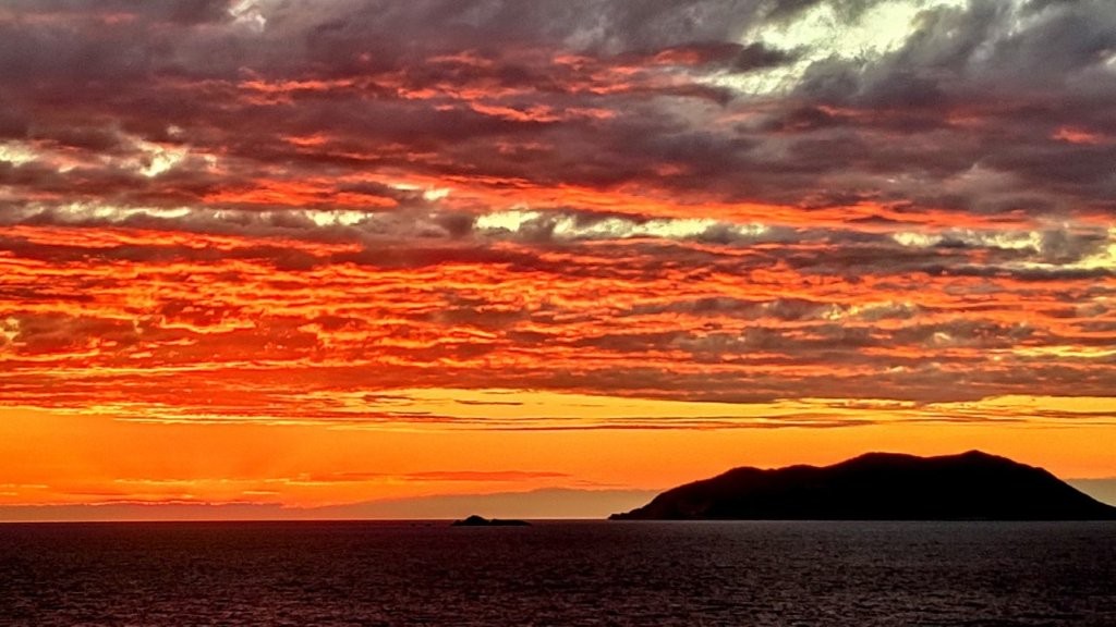 Der frühe Abend kündigte sich mit einem dramatischen Sonnenuntergang an – konnte es schöner sein?