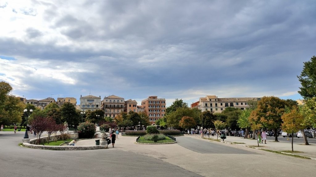 Unsere Stadtführung durch die Altstadt von Kerkyra begann am Spianada-Platz, auch Esplanade genannt.