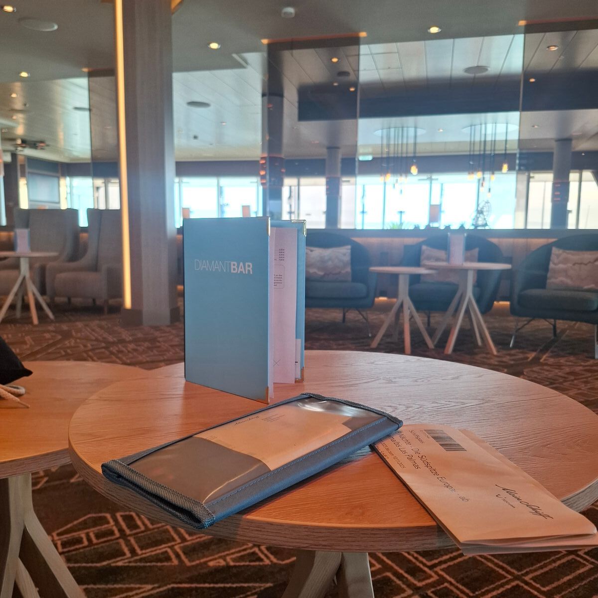 Angekommen auf der Mein Schiff 7, haben wir zuerst unsere Sicherheitseinweisung absolviert. Diese fand für uns in der Diamantbar statt und ein Crew Staff hat uns circa 5 Minuten Erklärungen gegeben und gezeigt, wie man die Weste anlegt. Das kannte ich in dieser Form noch nicht, da ich bisher nur mit AIDA unterwegs war.
