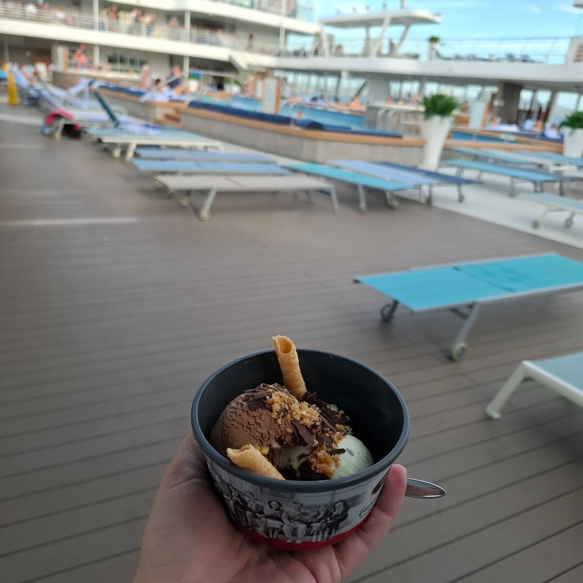Ich war auch sehr begeistert von dem schönen Außendeck. Ein erstes Eis durfte auch nicht fehlen.