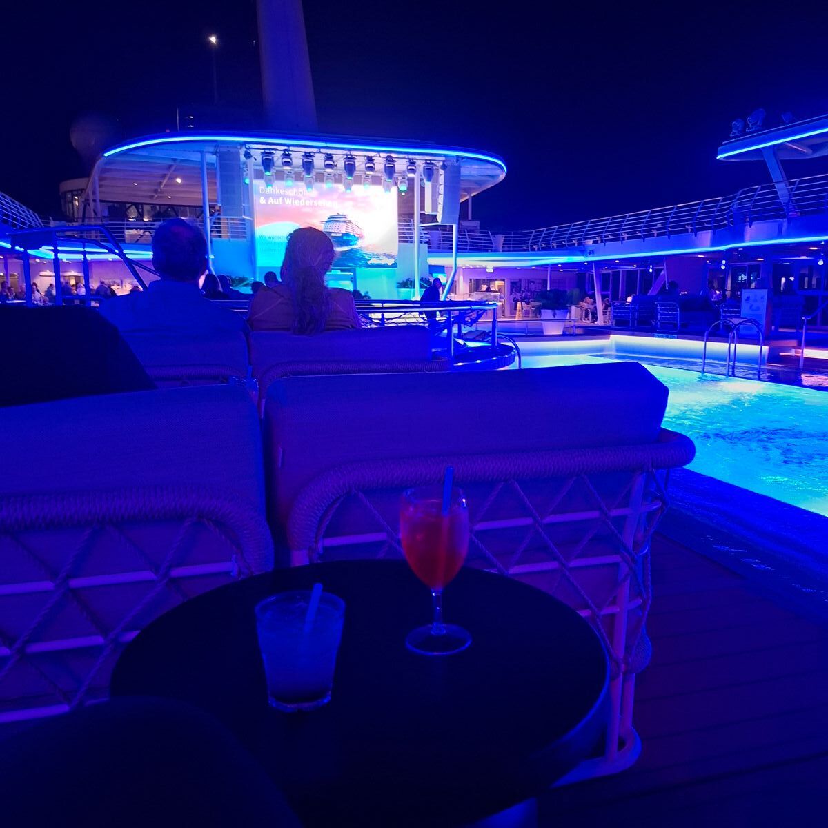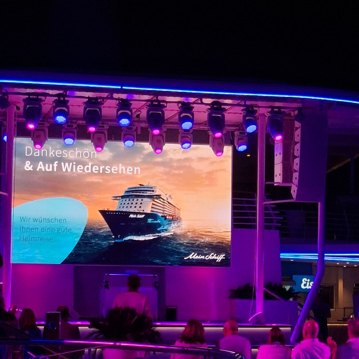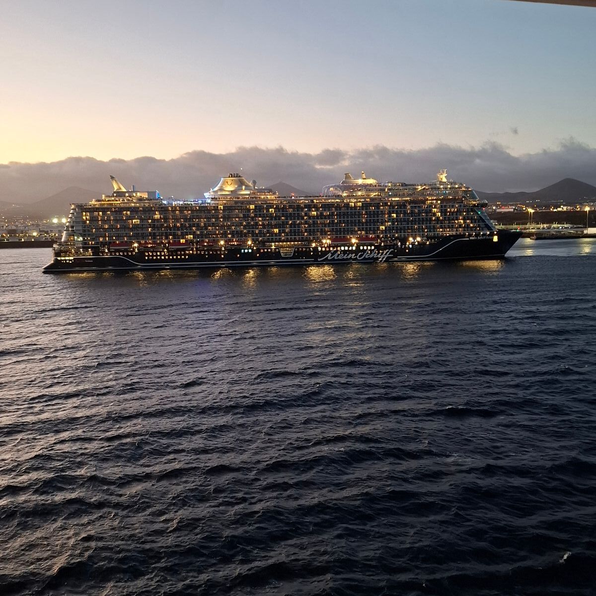 Nun ging es auf direkten Weg nach Lanzarote wo wir am Abend eintreffen sollen. Bevor wir unseren Liegeplatz in Beschlag nehmen durften, ist die Mein Schiff Relax aus Lanzarote ausgelaufen. Das war ein ganz besonderes Spektakel mit viel Gänsehaut-Feeling.