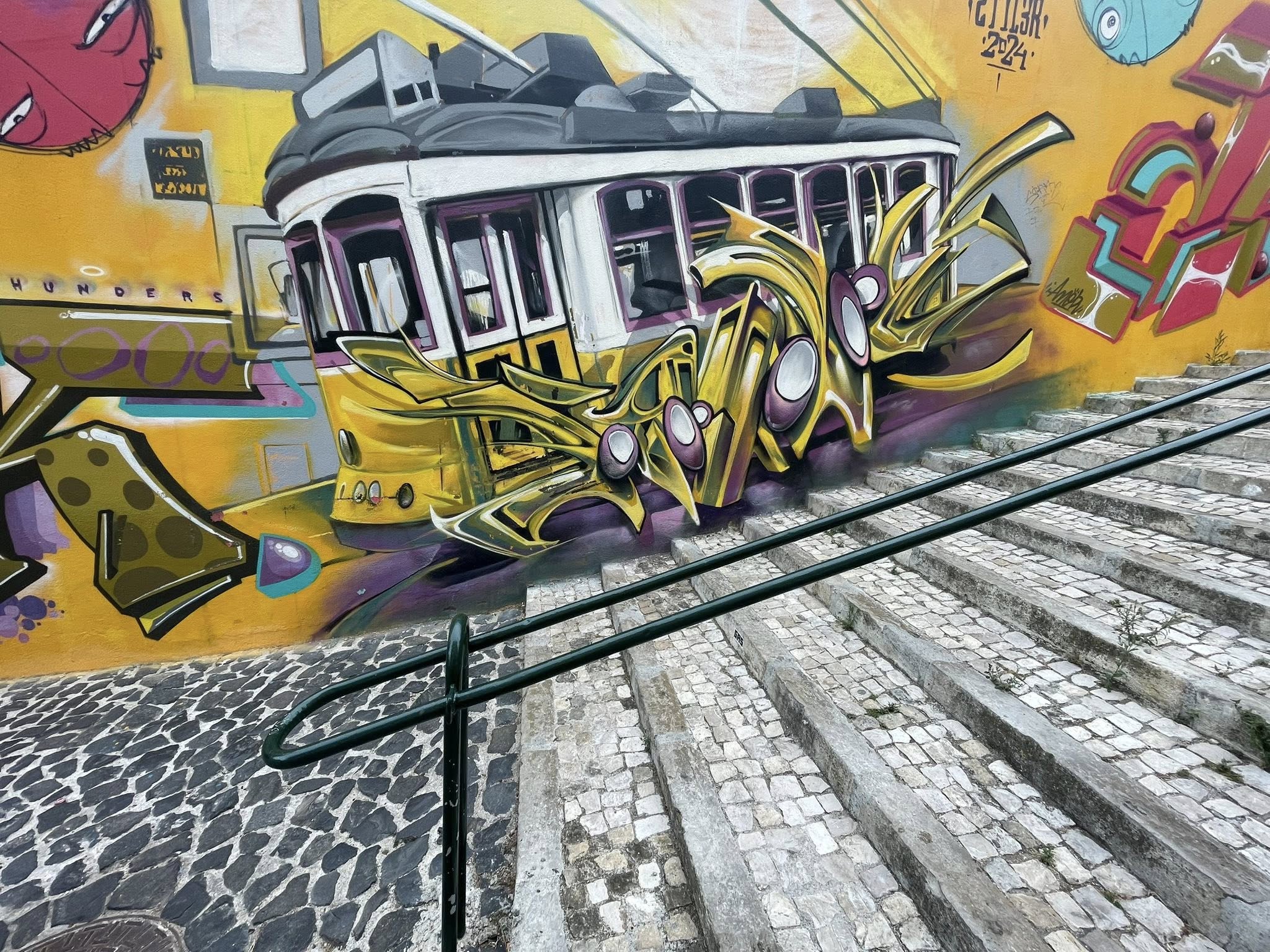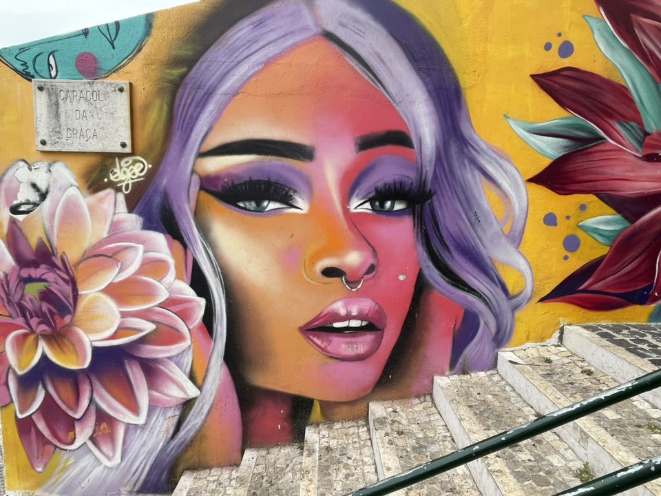 Doch nicht nur die Aussicht lohnte sich. Gleich nebenan entdeckten wir die Caracol da Graça, eine lange Treppe, die hinunter ins Viertel führt. Ihre Mauern waren über und über mit bunten Graffitis bedeckt – eine lebendige Freiluftgalerie.