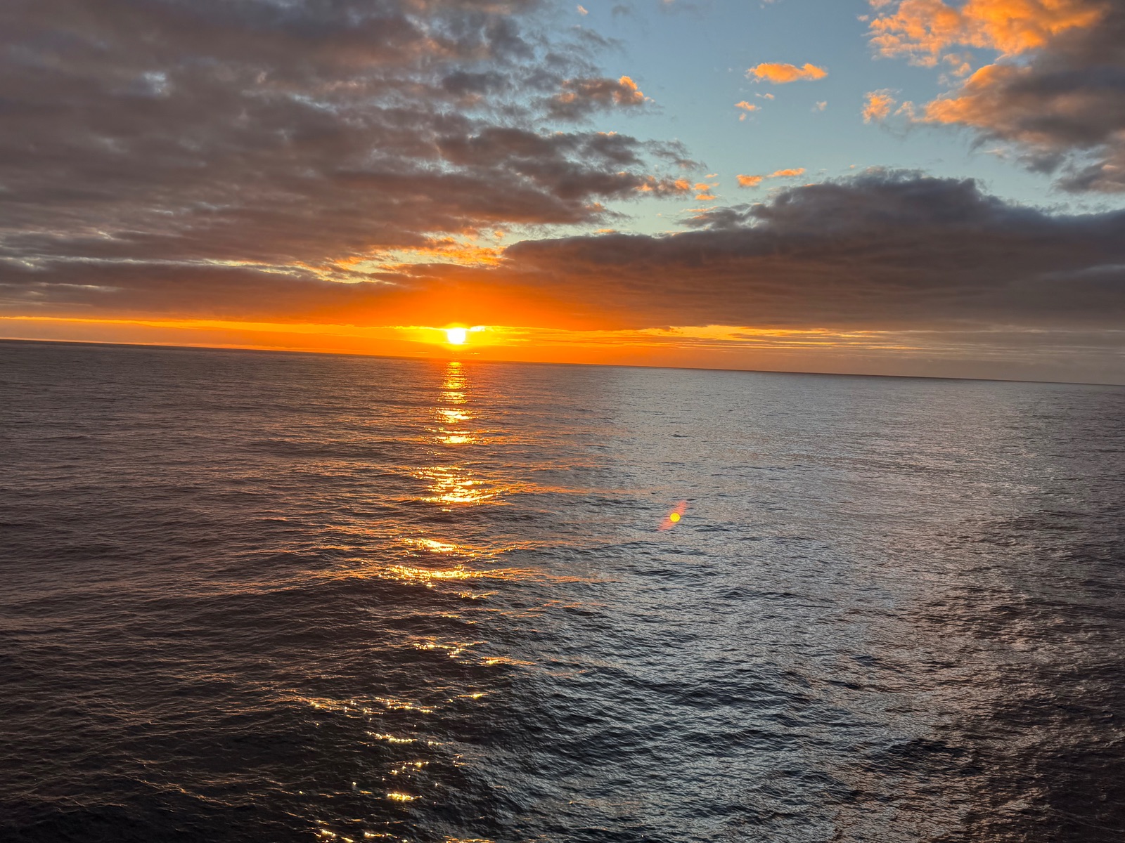 Beim morgendlichen Hinausschauen vom Balkon unserer Kabine machte sich auch gerade wieder die Sonne auf, um uns zu begrüßen und ihr freundliches Tagwerk zu beginnen.