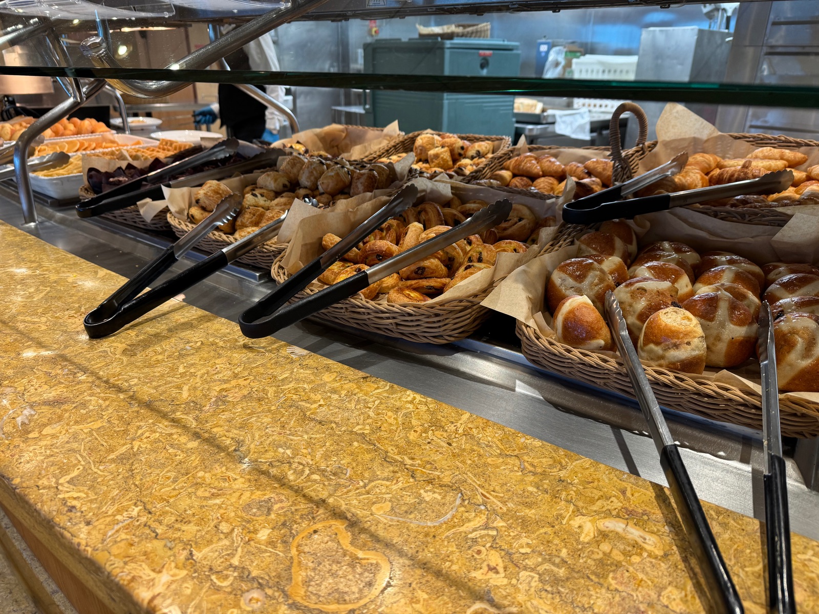Die Angebotsvielfalt alleine an Brot und Gebäck sowie an Eierspeisen, Obst, Cerealien etc. ist erfreulich und auch warme Speisen werden dargeboten.