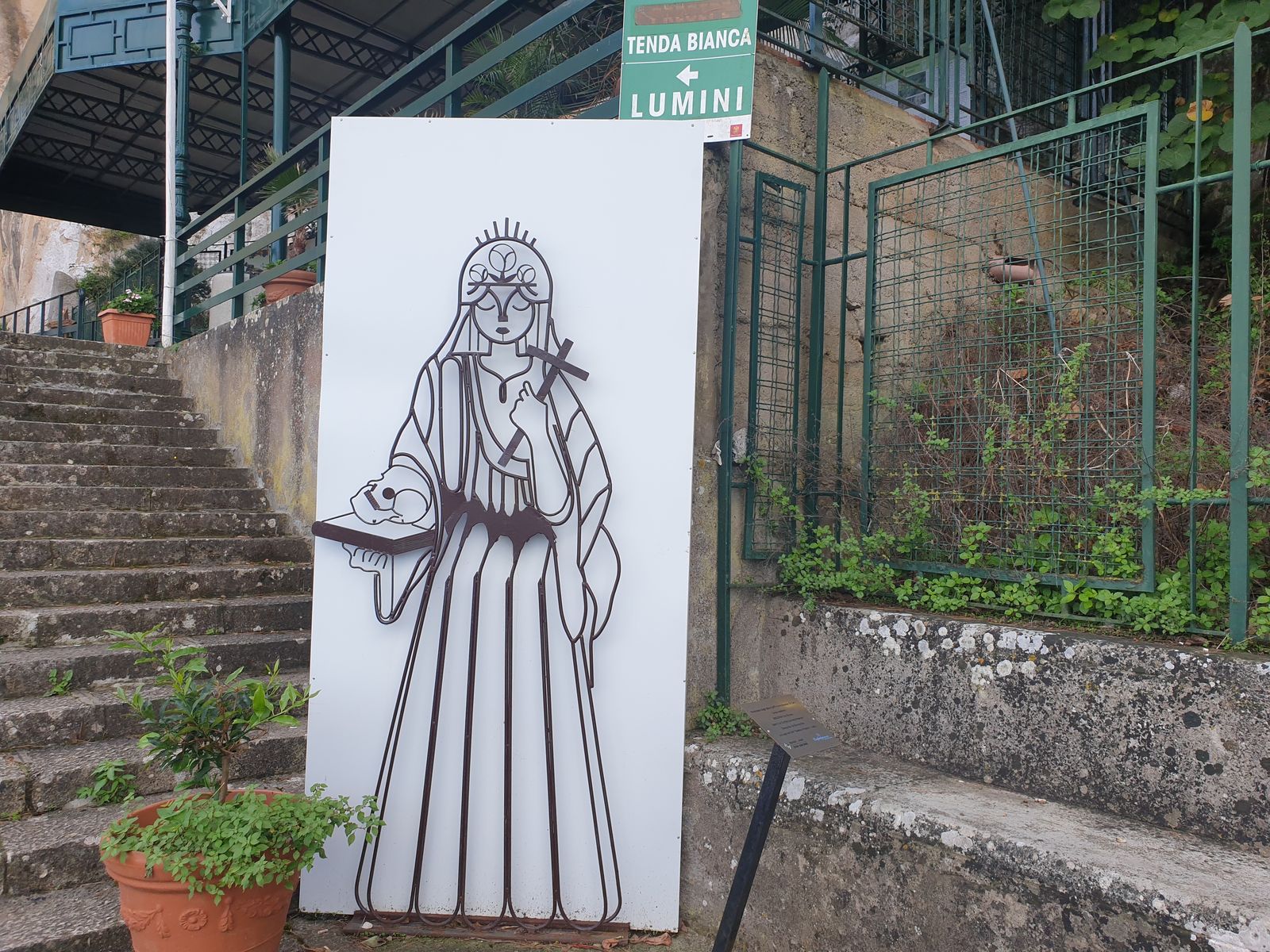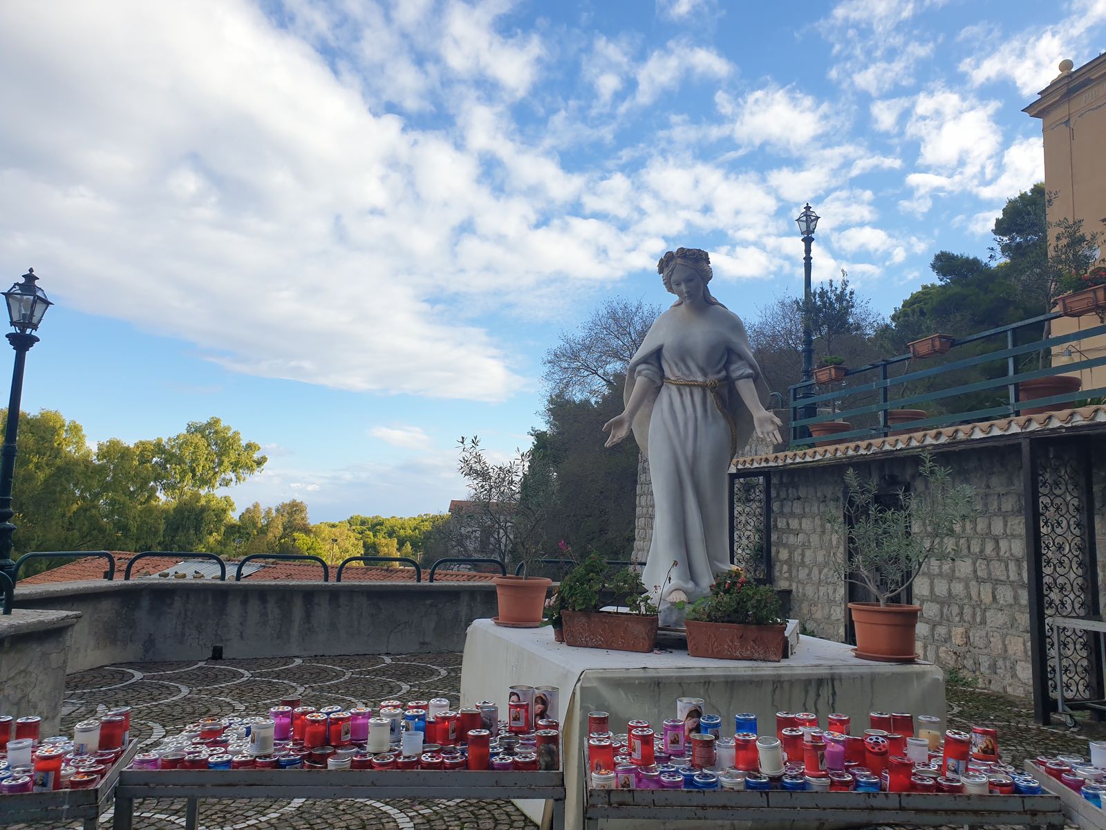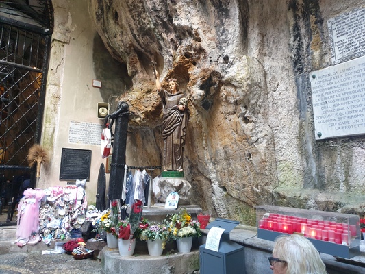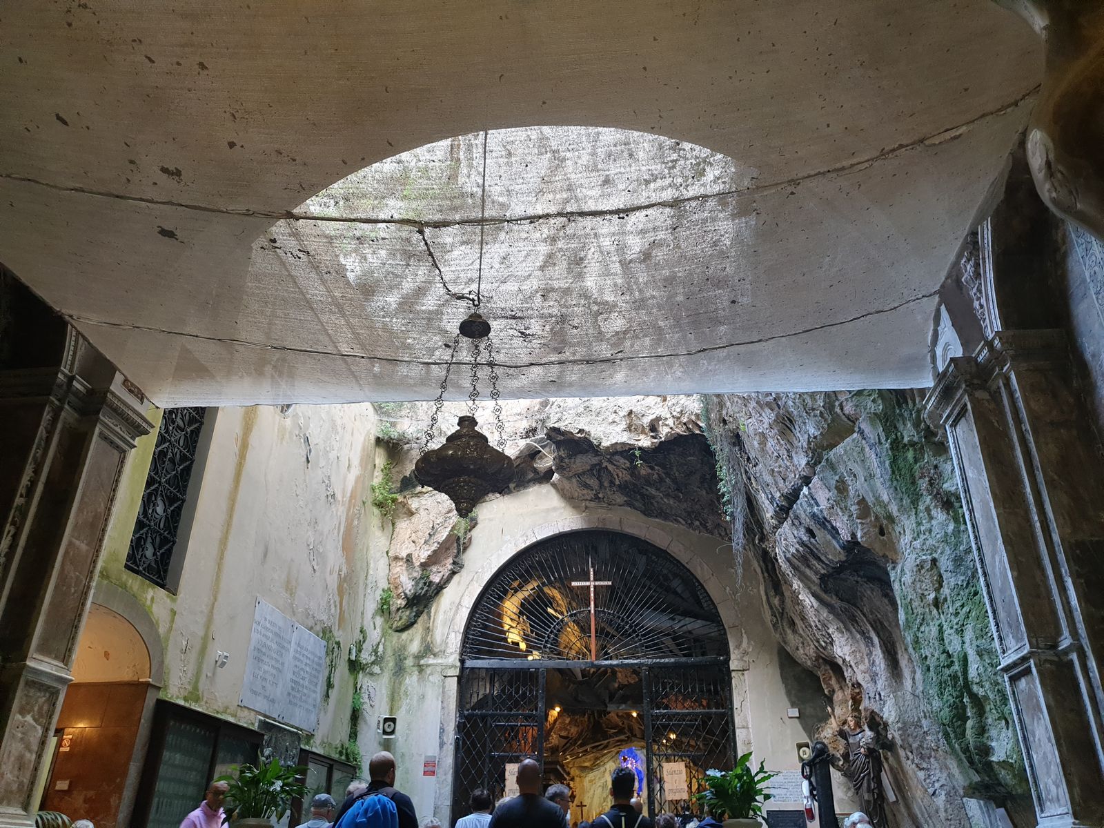 Der nächste Halt ist an der Wallfahrtskirche der Heiligen Rosalia, der Schutzpatronin der Stadt und da es heißt für uns: so, nun steigt man schön die Stufen hoch! Rosalia soll im 12. Jahrhundert gelebt und einen großen Teil der Jahre in einer Höhle auf dem Monte Pellegrino verbracht haben.