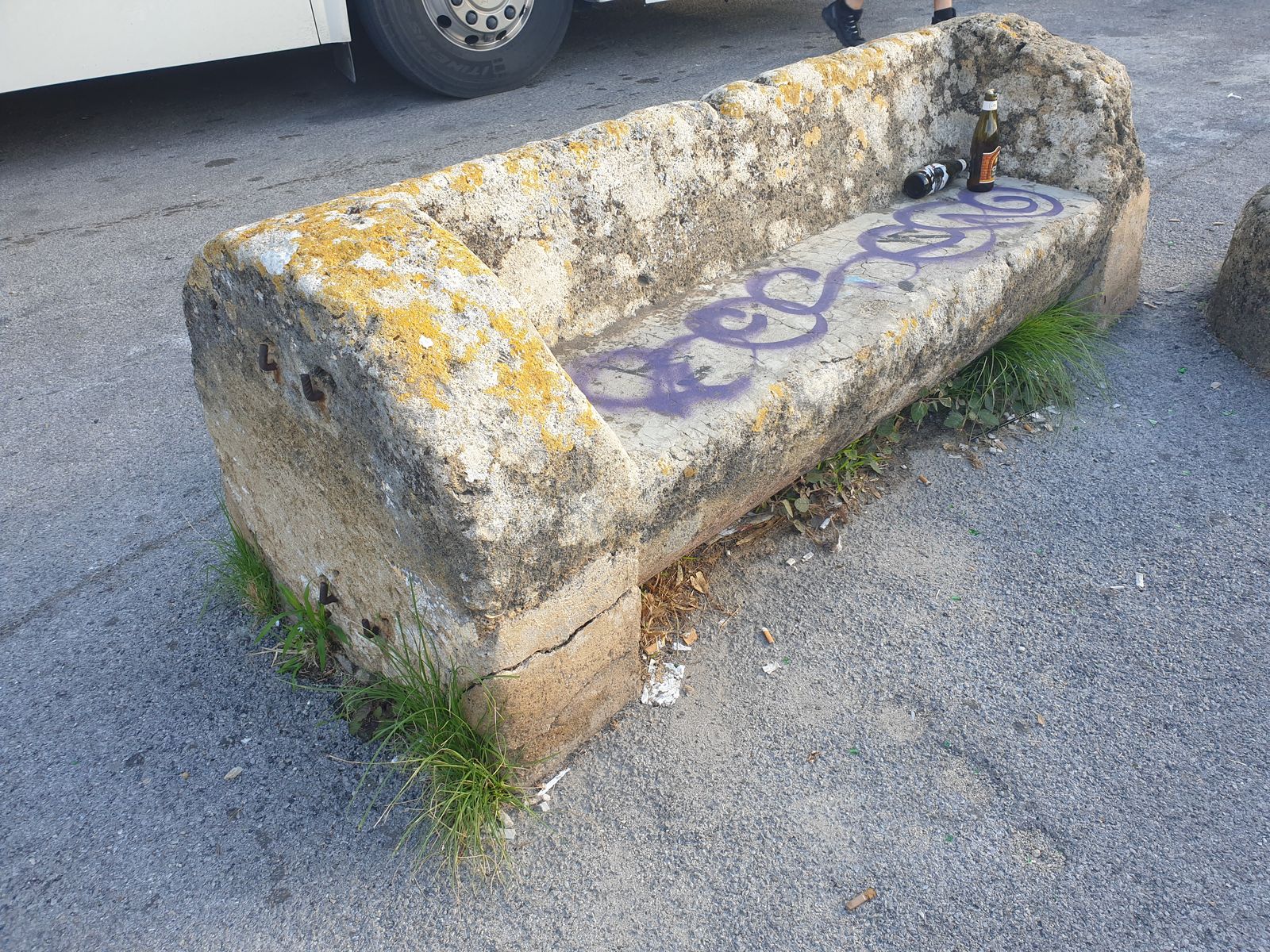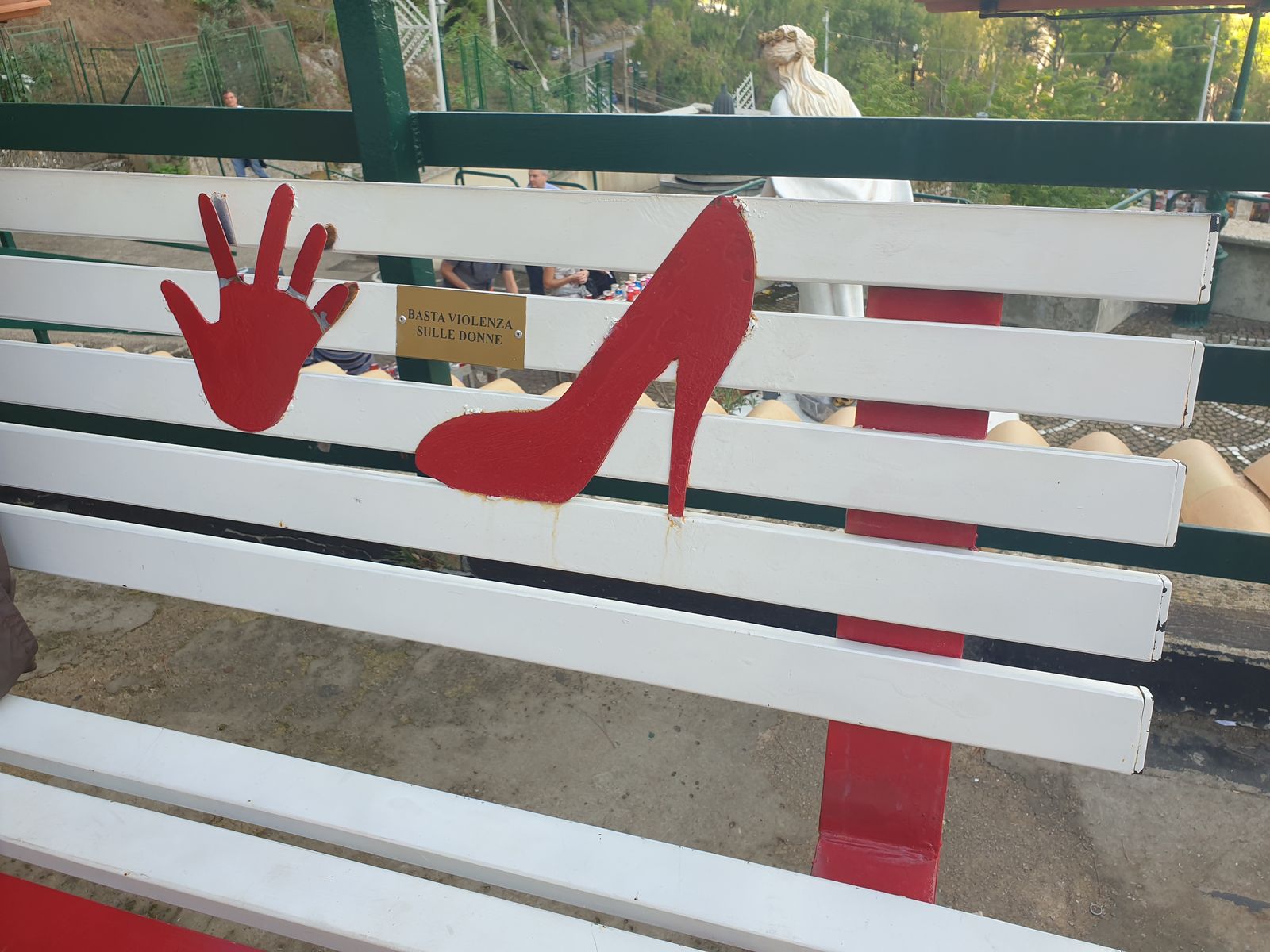 Wir schauen uns noch ein wenig um und mir fällt eine bemalte Bank auf. Schnell im Internet gesucht und „Basta violenza sulle donne“ – heißt übersetzt „Stoppt die Gewalt gegen Frauen„. Also ich stimme dem voll zu.