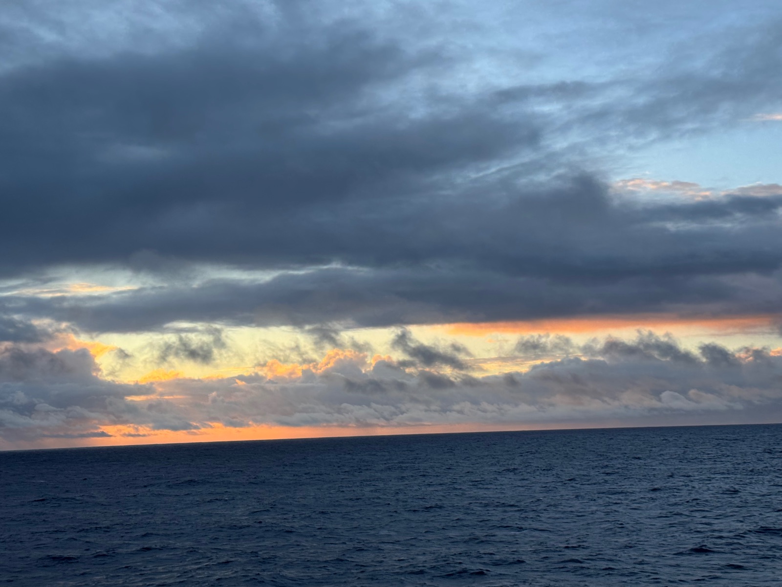 Es ist heute der vierte Seetag in Folge und wir haben bereits unsere Uhren das Drittemal um je eine Stunde zurückgesetzt.