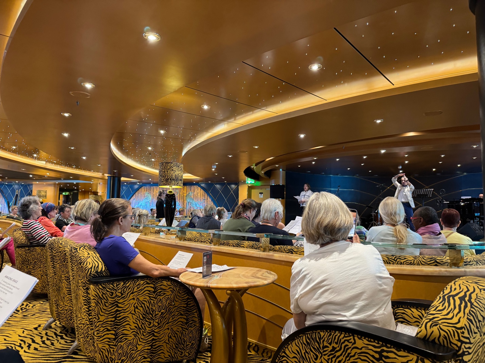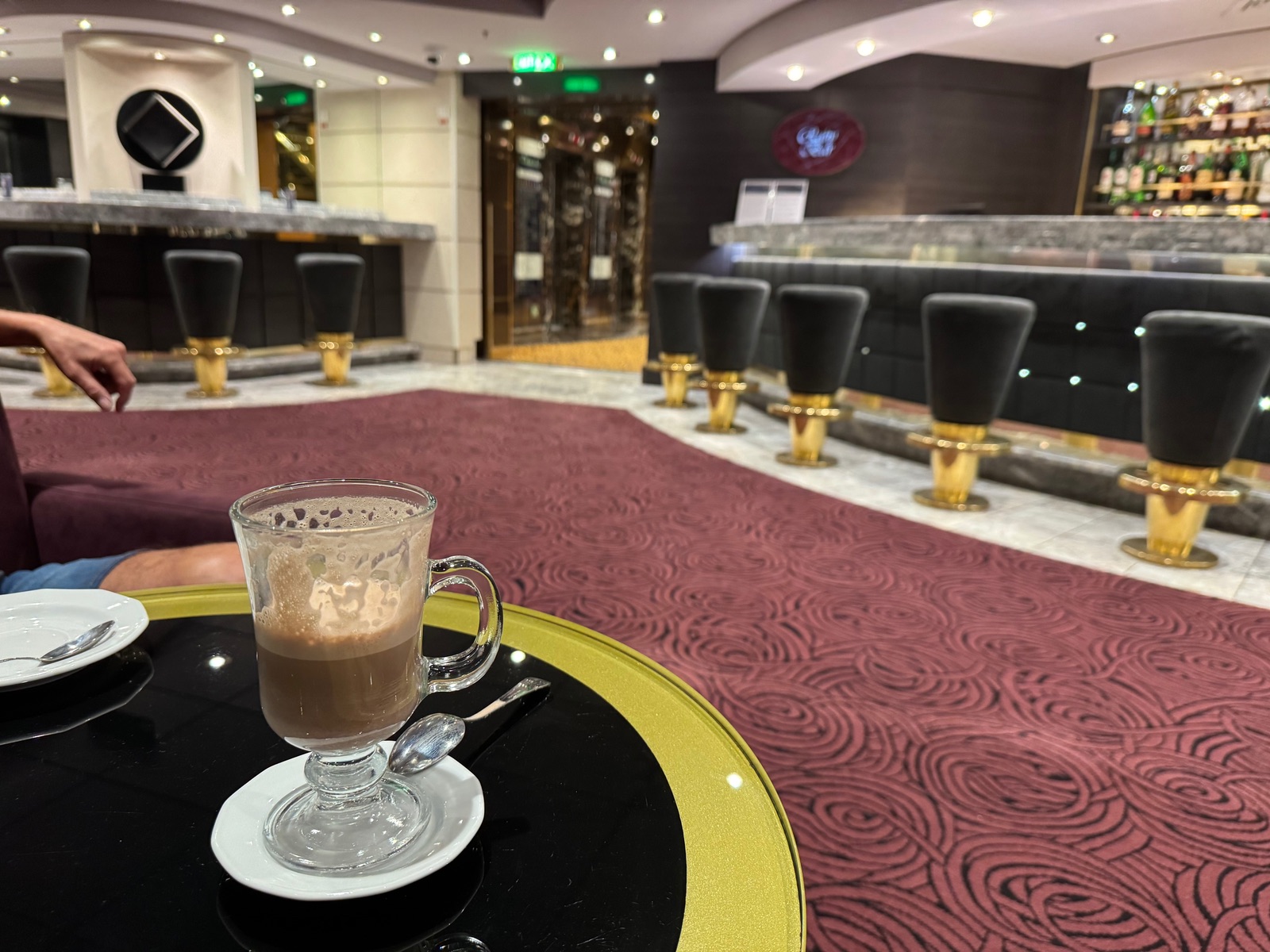 Nach der Chorprobe und dem Mittagessen gehört der Nachmittag dann uns gemeinsam, den wir meist mit einem Kaffee/heiße Schokolade an der Ruby Bar beginnen und anschließend möglichst lesend auf dem Kabinenbalkon verbringen, bzw gemeinsam noch eine Strecke auf Deck 7 walken.