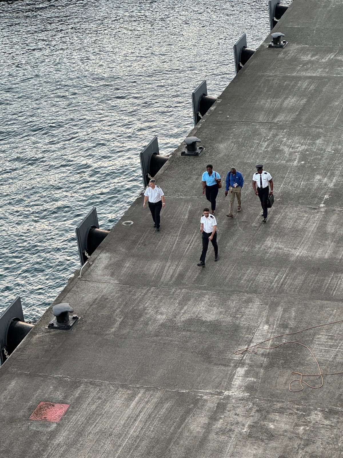 Um 6:40 Uhr sieht man schon zwei Gangways bereitgestellt, die behördliche Kommission ist auf dem Weg.