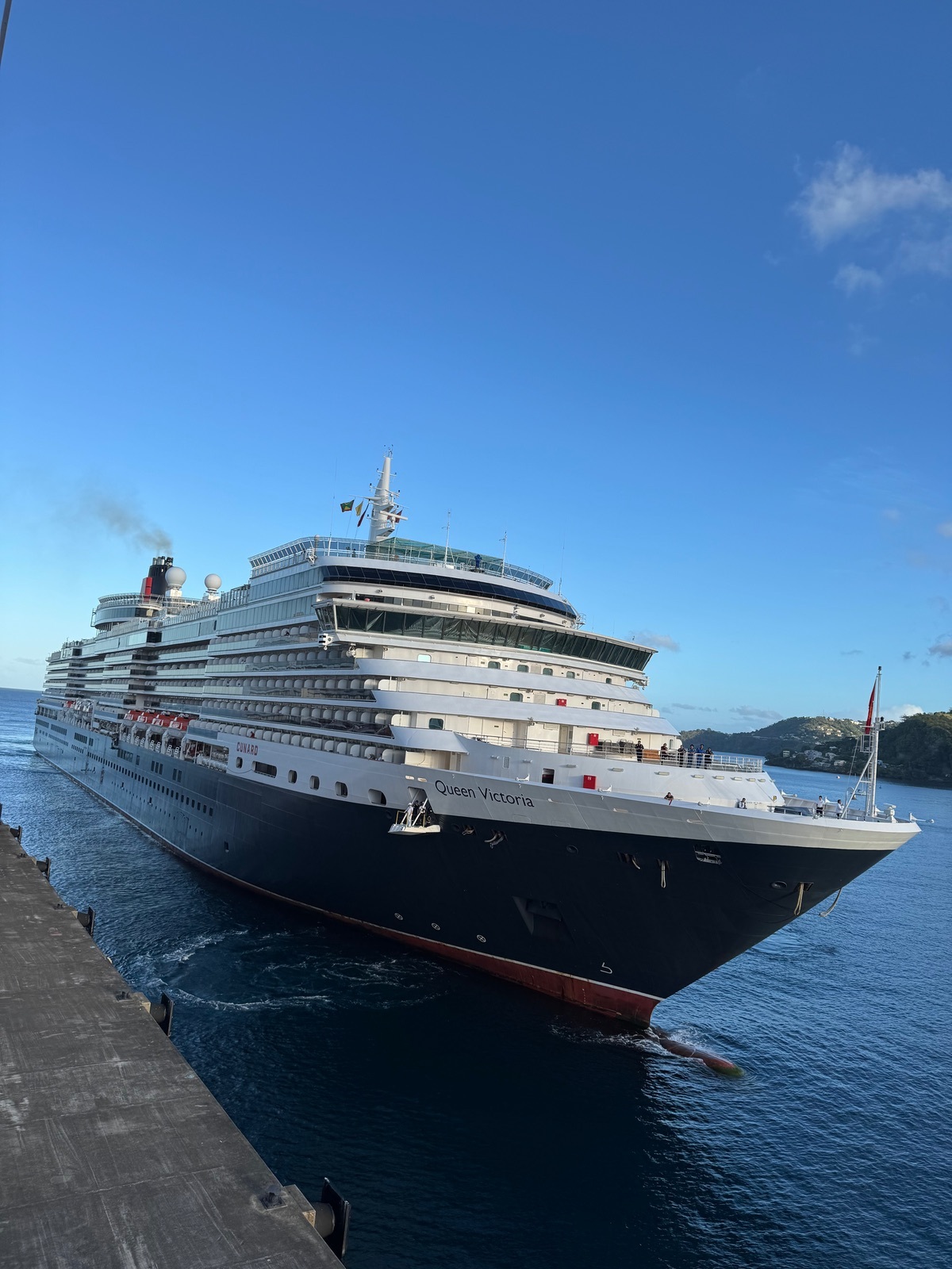 Knapp 50 Minuten später gesellt sich die Queen Victoria von Cunard zu uns und beginnt ihr Anlegemanöver.
