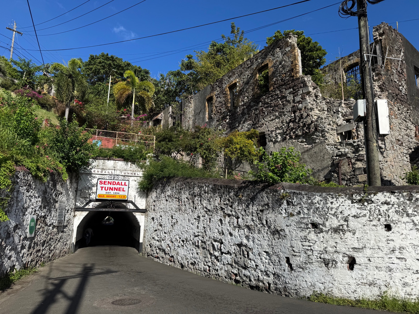 Aus dem Cruiseterminal herauskommend, etwas rechter Hand gegenüber gelegen, ist ein Tunnel, der zwar einseitig befahren wird und durch den man gehen kann, um an den kleineren alten Hafen zu gelangen und dort die Carenage entlangzuspazieren.
