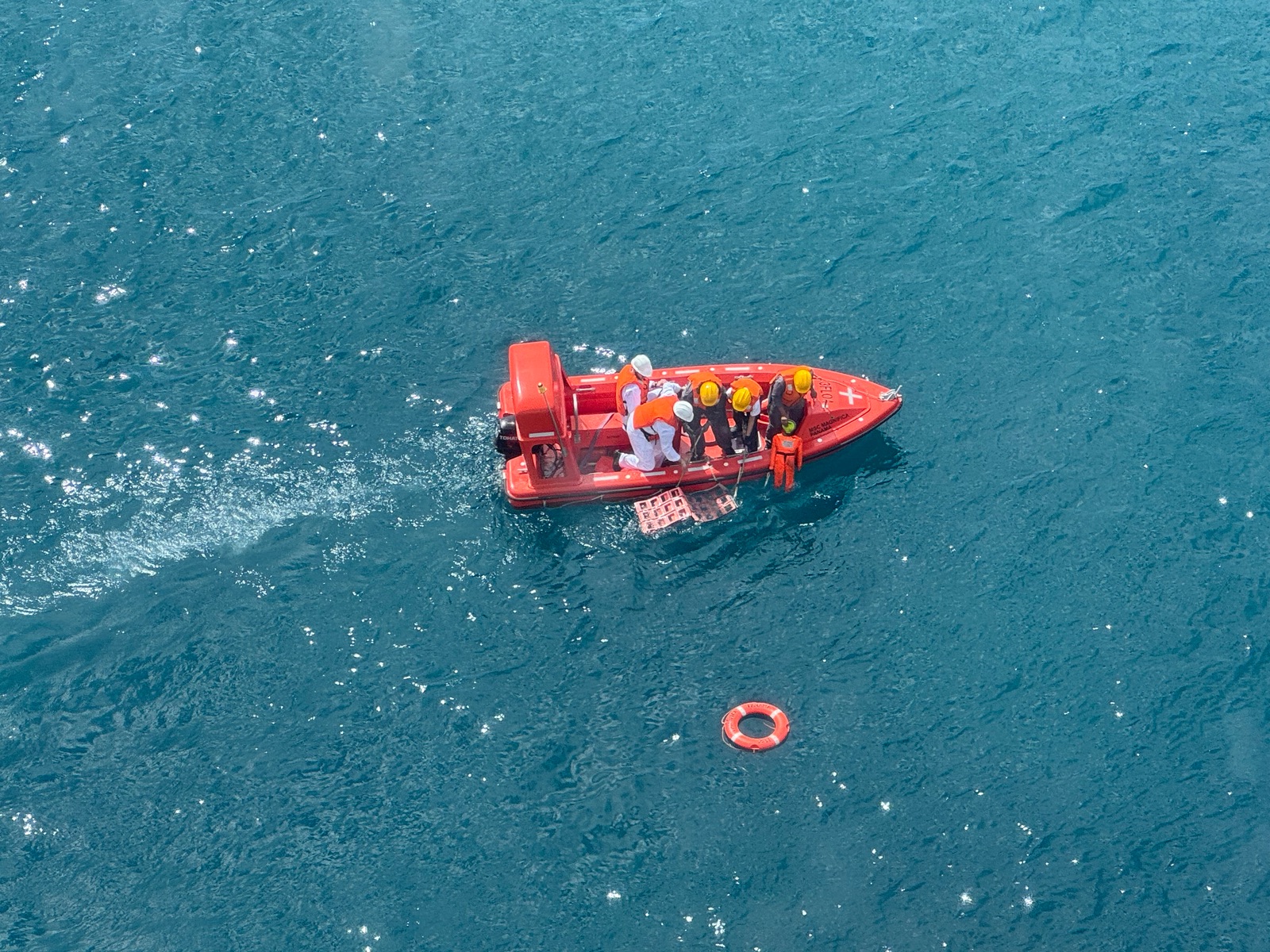 Einer Crewübung, „eine Person aus dem Wasser bergen“, haben wir beim Kaffeetrinken von Deck 13 aus dabei auch noch zuschauen können.