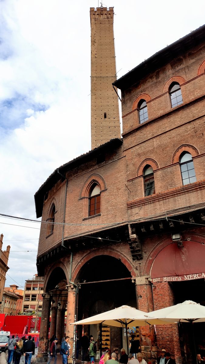 Sie gehören zu den ehemals ca. 180 Geschlechtertürme der Stadt (aktuell etwas mehr als 20), die von reichen Familien erbaut wurden, um von oben Stadt um Umgebung ausspähen zu können. Die beiden Türme haben um die 900 Jahre auf dem Buckel und wurden von einer Geldwechslerfamilie bzw. von der Adelssippe Asinelli erbaut. Schade, wir konnten nicht einen von beiden Türmen besteigen – gesperrt.