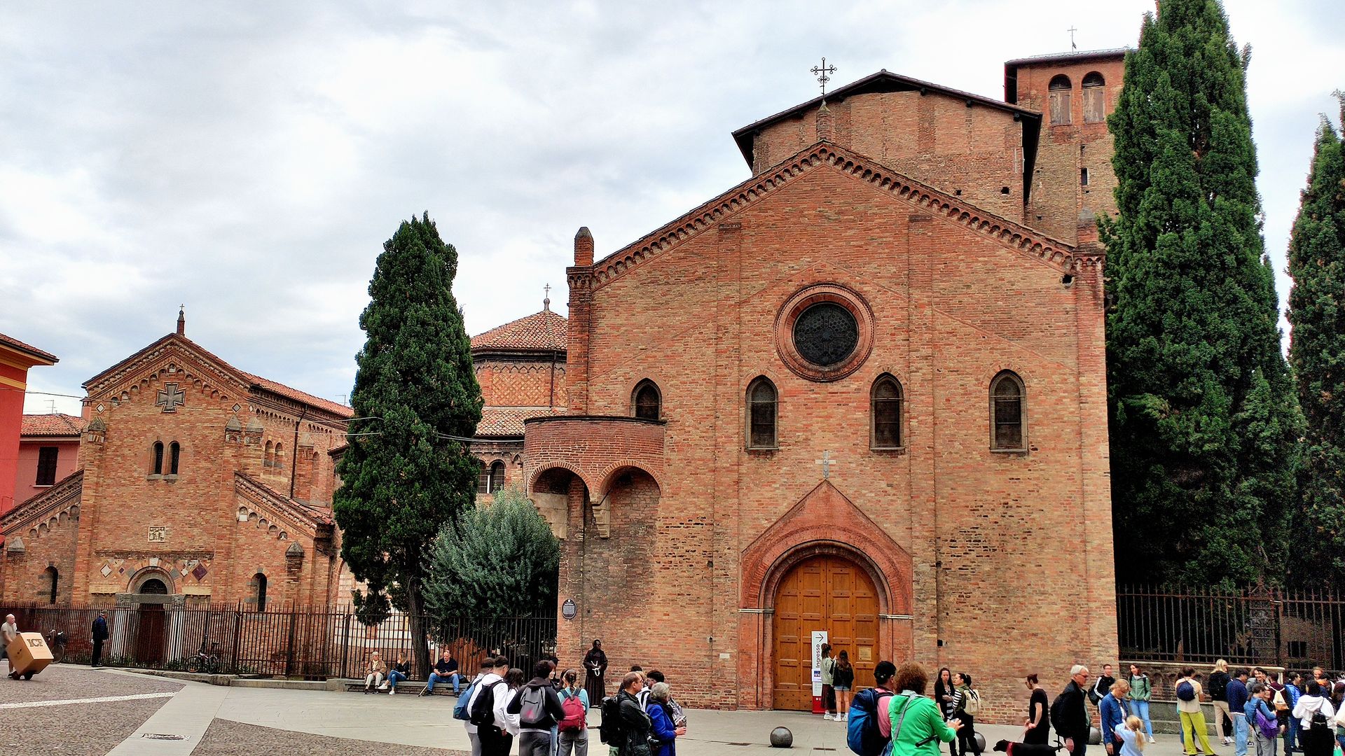 Für uns war der Gesamtkomplex so ziemlich das Interessanteste und Schönste, das wir in Bologna gesehen hatten. Viele Touristen, aber der Platz war nicht überlaufen. Wir hatten das Gefühl, dass sich dort in erster Linie Kunstinteressierte aufhielten. Kein Wunder, denn die Basilika besteht aus sieben Kirchen, was allerdings von der Anzahl her umstritten ist. Die erste Kirche wurde Ende des 4. Jahrhunderts über den Resten eines heidnischen Tempels errichtet; in den Folgejahrhunderten wurden sukzessive weitere Kirchen angebaut. Seit dem 12. Jahrhunderts besteht der insgesamt romanische Komplex i.W. in der jetzigen Form.