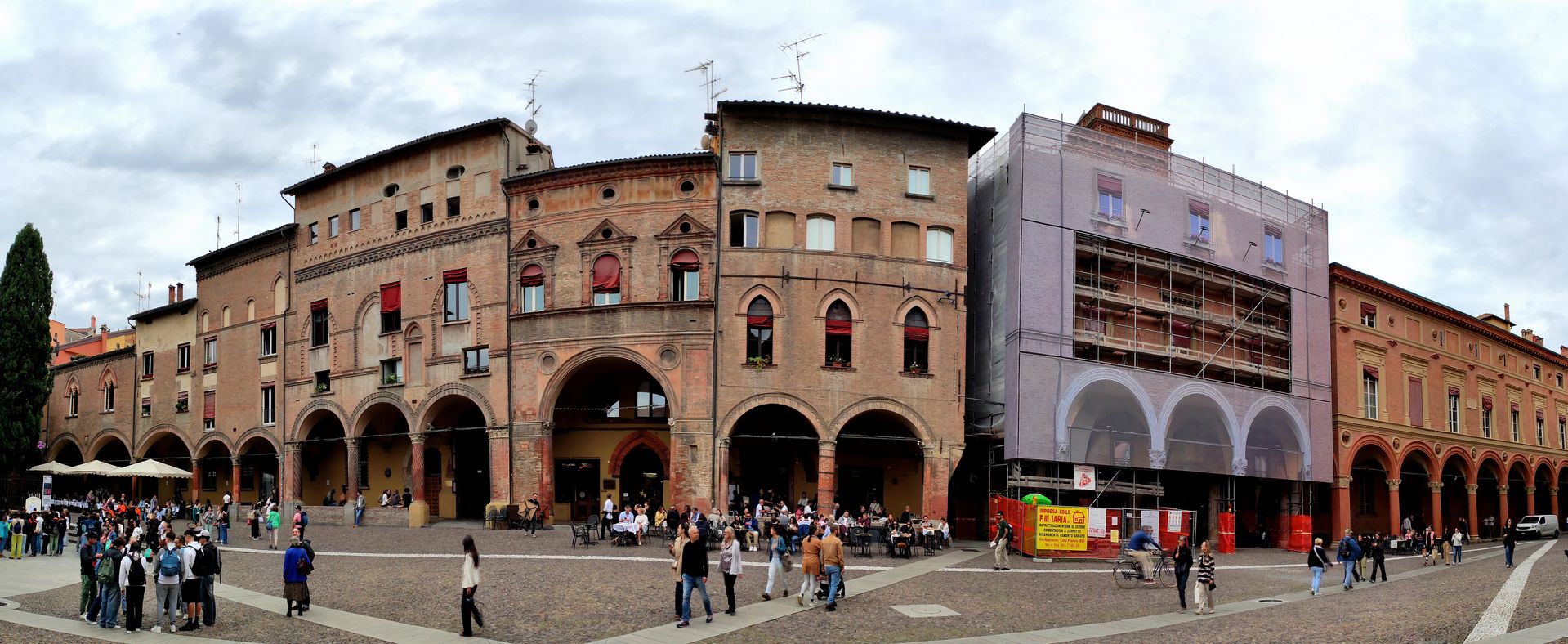 Der untere Umbau des Torre della Garisenda sah nicht sehr vertrauenserweckend aus – vielleicht in einigen Jahren, wenn die Renovierung beider Türme abgeschlossen sein wird. Derzeit sieht die Stadtverwaltung den Zustand als sehr kritisch an. Ein Grund, sich davon zu machen und andere Flecken zu besichtigen. Wie zunächst die Piazza della Mercanzia.