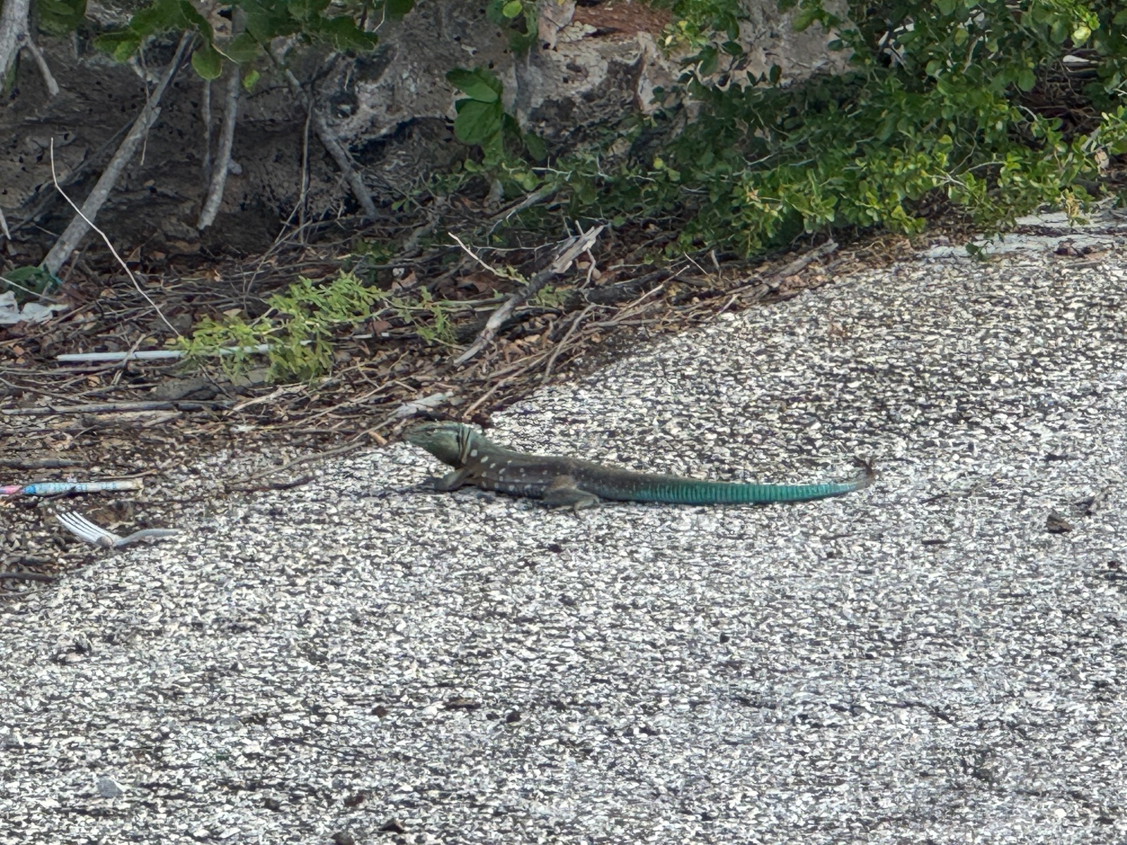 Diese scheuen Wegelagerer zeigten und sonnten sich dort. Lustig, dass sie diesen typischen „Curacao-Blue“ farbigen Schwanz haben.