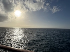 Ein Seetag steht an und wir freuen uns auch auf diesen Tag, hoffen darauf, dass wir unseren mittlerweile sehr liebgewonnenen Kabinenbalkon zum Handarbeiten/Lesen, Ruhen und Sonnen nutzen können.