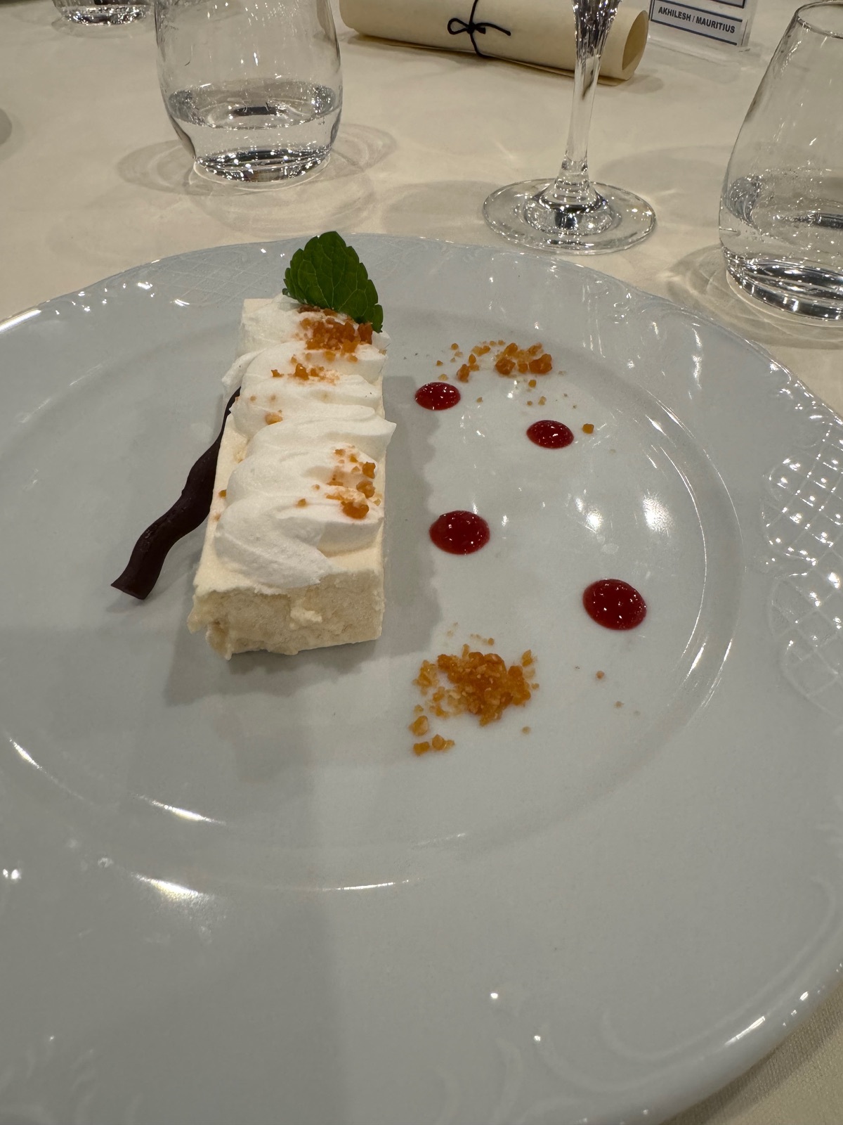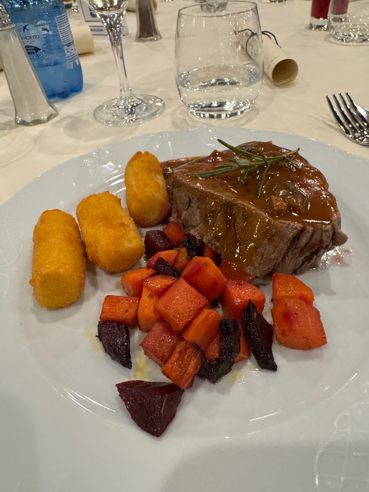 Am vorgestrigen Galaabend wählte ich Rinderfilet und zum Nachtisch eine Nougatmousse, exquisite! ![]()