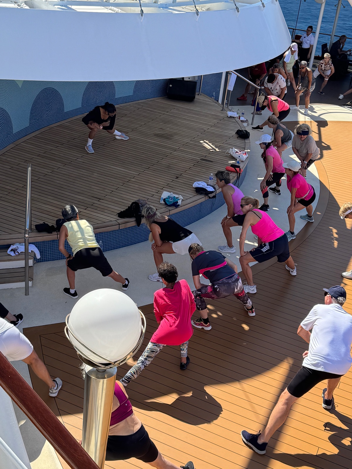 Diverse Wake-Up Stretching und Aerobic Programme werden am Vormittag angeboten und auch überaus gut angenommen, von Menschen unterschiedlichen Alters.