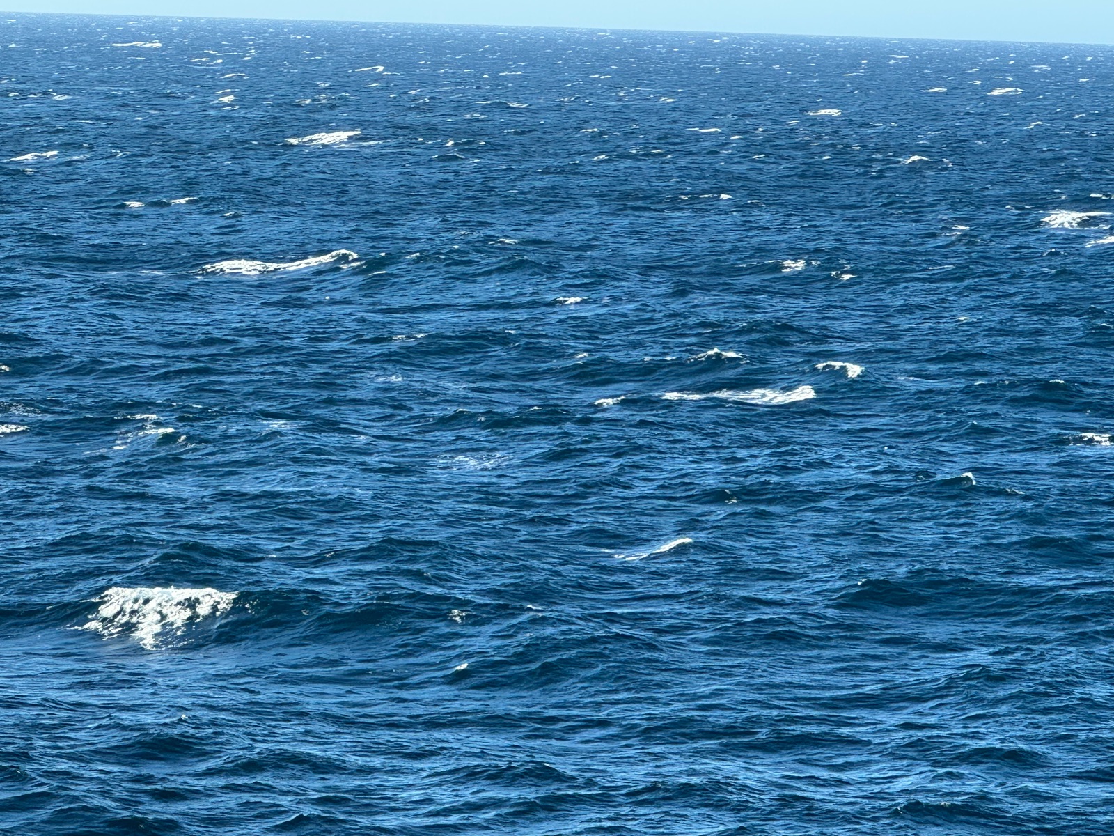 Wir sitzen gerne auf dem Kabinenbalkon, lesen oder lassen einfach unseren Gedanken Freiraum, schauen hinaus aufs weite Meer und erfreuen uns daran, das lustige Treiben der fliegenden Fische zusehen zu können.