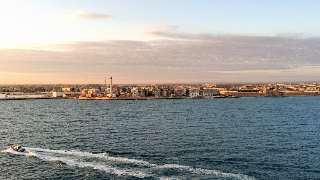 als Mein Schiff 6 sich der apulischen Küste näherte. Ein wunderschöner Sonnenaufgang! Auf der anderen Seite erstreckte sich Bari. Mit ca. 320.000 Einwohnern eine typische italienische Großstadt mit hohen Bauten direkt am Meer.
