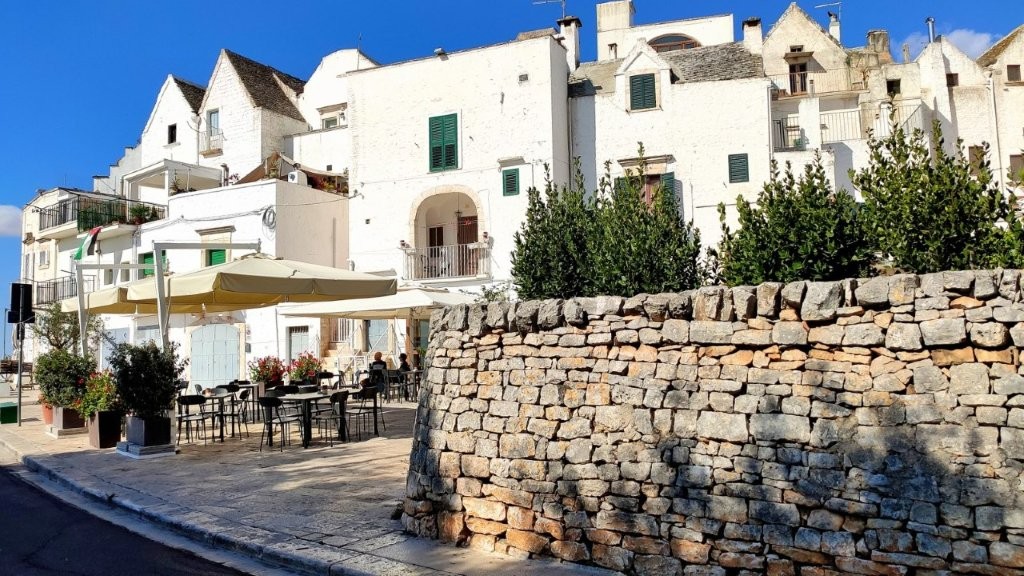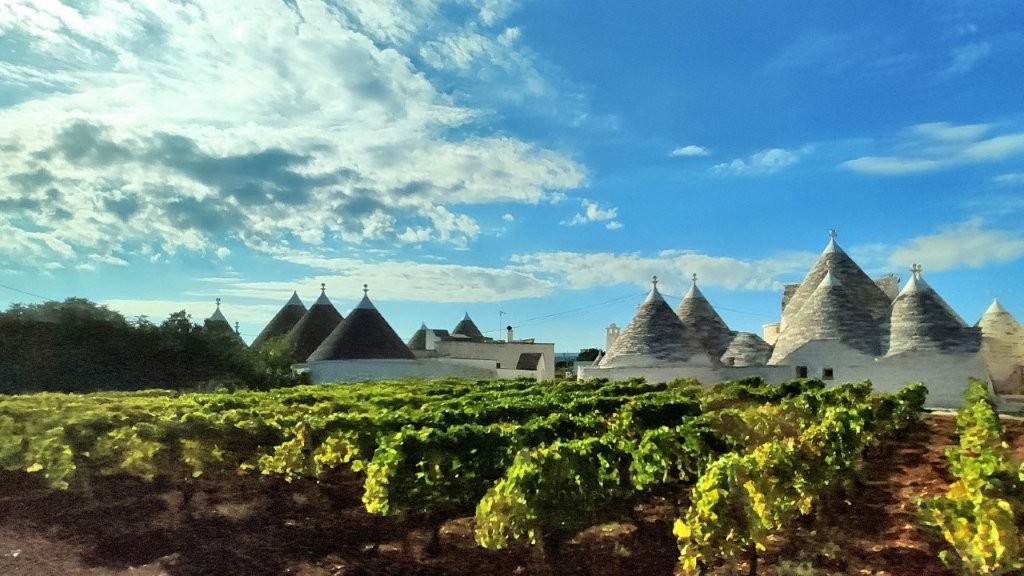 Normalerweise steht der Trullo nicht allein. Mehrere Räume für unterschiedliche Zwecke stehen direkt nebeneinander; jeder mit dem Kegeldach. Besonders bekannt sind die vielen Kegelhäuser im Ort Alberobello – ein Trullo neben dem anderen. Ein schneeweißes Ortsbild in einem Teil des Städtchens, in dem sich in der Hochsaison Scharen von Besuchern gegenseitig auf die Füße treten. Alle wollen das herrliche UNESCO-Weltkulturerbe besichtigen. Wir eigentlich aus – aber bei unseren Ausflugsbuchungen gab es keine freien Plätze mehr.