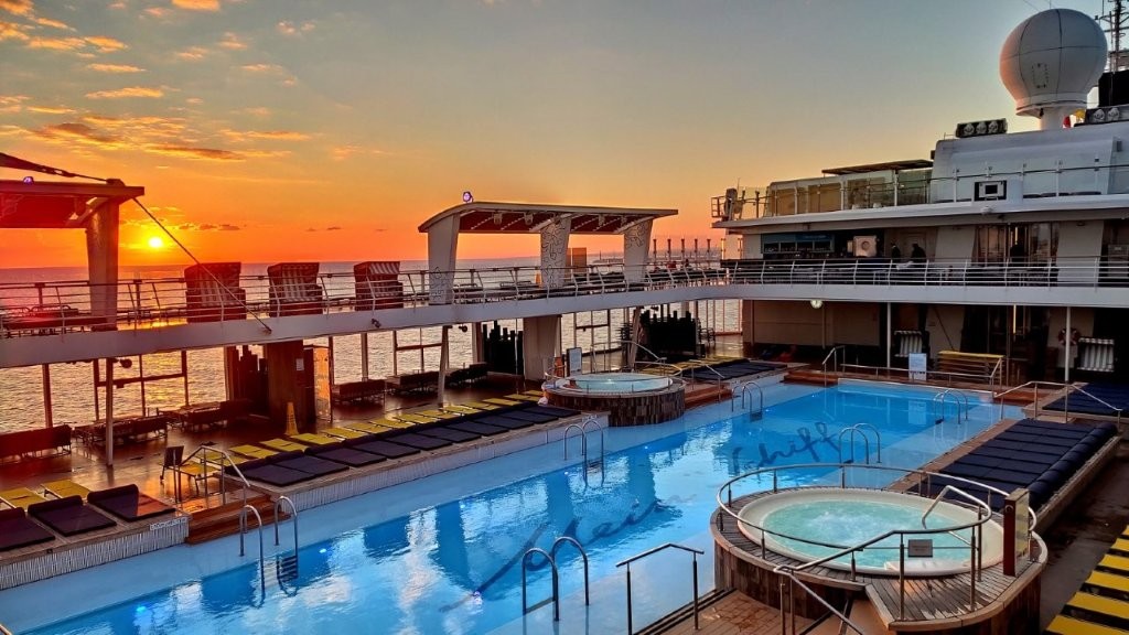 als Mein Schiff 6 sich der apulischen Küste näherte. Ein wunderschöner Sonnenaufgang! Auf der anderen Seite erstreckte sich Bari. Mit ca. 320.000 Einwohnern eine typische italienische Großstadt mit hohen Bauten direkt am Meer.