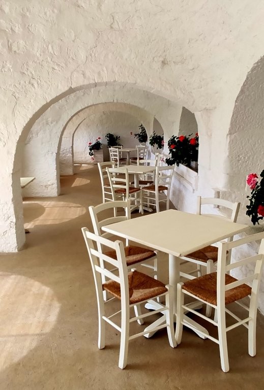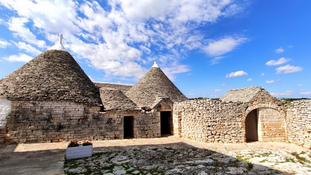Normalerweise steht der Trullo nicht allein. Mehrere Räume für unterschiedliche Zwecke stehen direkt nebeneinander; jeder mit dem Kegeldach. Besonders bekannt sind die vielen Kegelhäuser im Ort Alberobello – ein Trullo neben dem anderen. Ein schneeweißes Ortsbild in einem Teil des Städtchens, in dem sich in der Hochsaison Scharen von Besuchern gegenseitig auf die Füße treten. Alle wollen das herrliche UNESCO-Weltkulturerbe besichtigen. Wir eigentlich aus – aber bei unseren Ausflugsbuchungen gab es keine freien Plätze mehr.