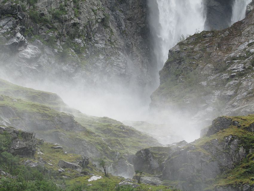 Es rauscht und tost nunmehr wieder gewaltig, denn auf der anderen Seite des tosenden Flusses stürzen etliche Wasserfälle zu Tal: