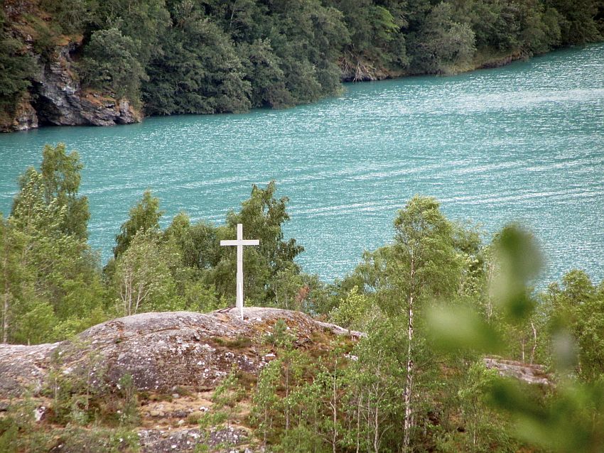 An einem Aussichtspunkt, der gleichzeitig auch eine Gedenkstelle für die Opfer der Felsrutsche von 1905 und 1936 ist, halten wir für einen Augenblick an. Und auch inne … So eine friedlich-schöne Landschaft … Und so viel Leid vor vielen Jahrzehnten … Von den 135 Menschen, die damals ihr Leben verloren, wurden nur 42 von ihnen jemals gefunden. Für alle anderen wurde der wunderschöne türkisfarbene Lovatnet zum nassen Grab. 300 Meter hoch ist der Eiffelturm in Paris. Eine Gesamthöhe von 300 Metern hatten auch die vom Ramnefjell herabgestürzten Felsmassen.