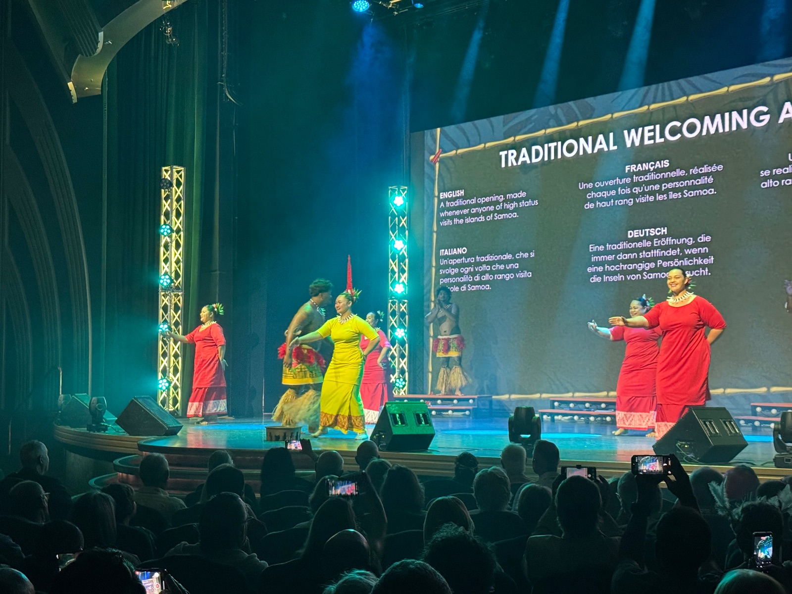 Der Abend nahm für uns seinen Lauf zunächst um 19 Uhr damit, dass wir der Samoan Ceremony Show im Theater zuschauten.