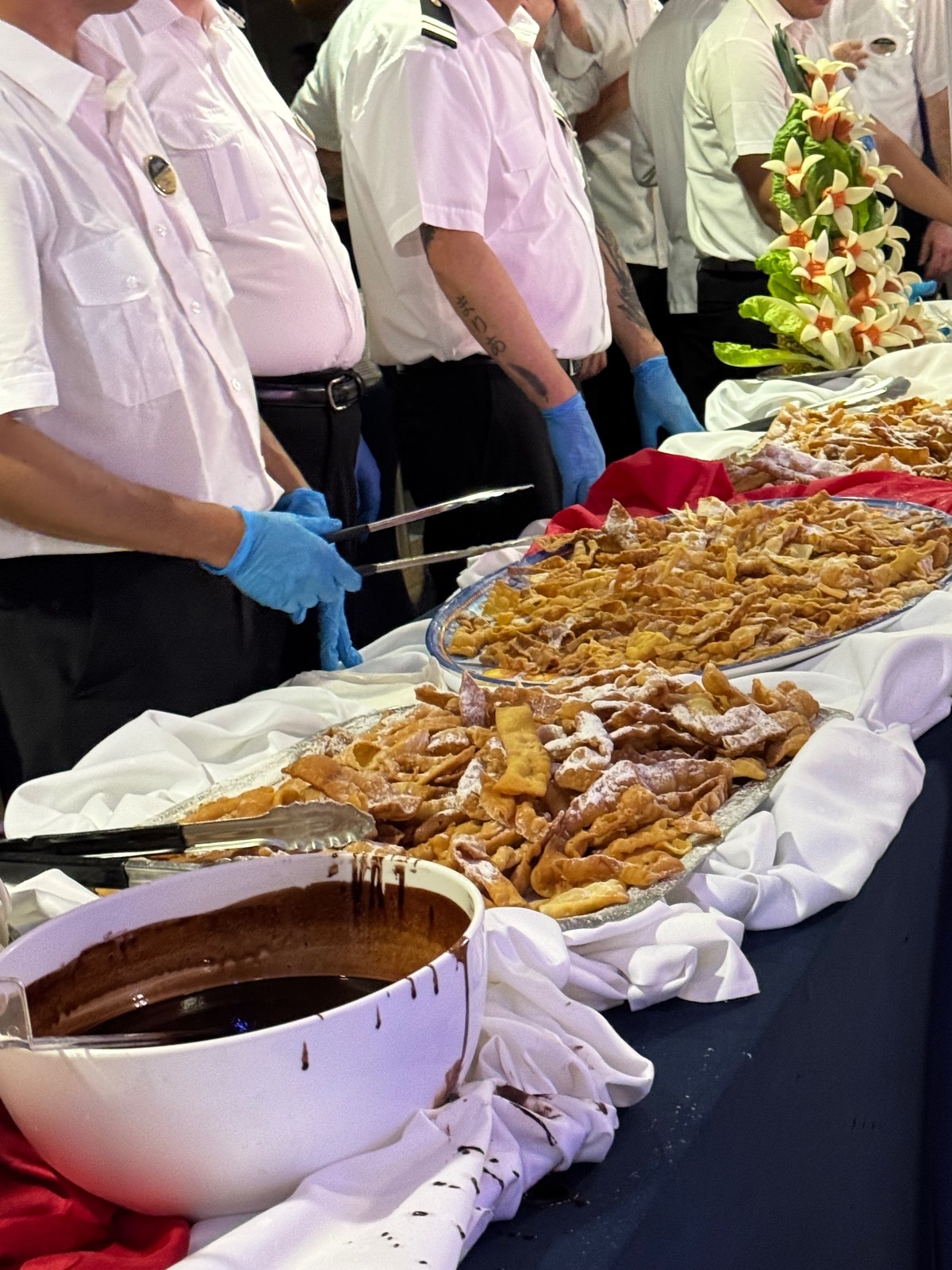 Damit wir alle noch einmal vor den 40 Tagen der Abstinenz uns ordentlich „Füllen“ können, wurde um 23 Uhr auch noch das Gebäck- und Schokoladenbuffet eröffnet.