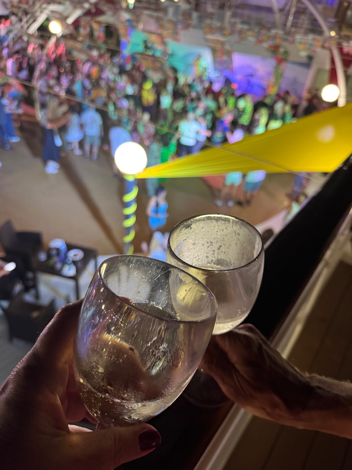 Aufgrund der fortgeschrittenen Zeit, wollten wir dem Geschehen erst gar nicht mehr beiwohnen, sind dann aber doch oben auf Deck 14 gestanden und haben kurzentschlossen auch noch ein Glas Sekt geordert, um auf dieses besondere und gewiss einmalige Ereignis anzustoßen.