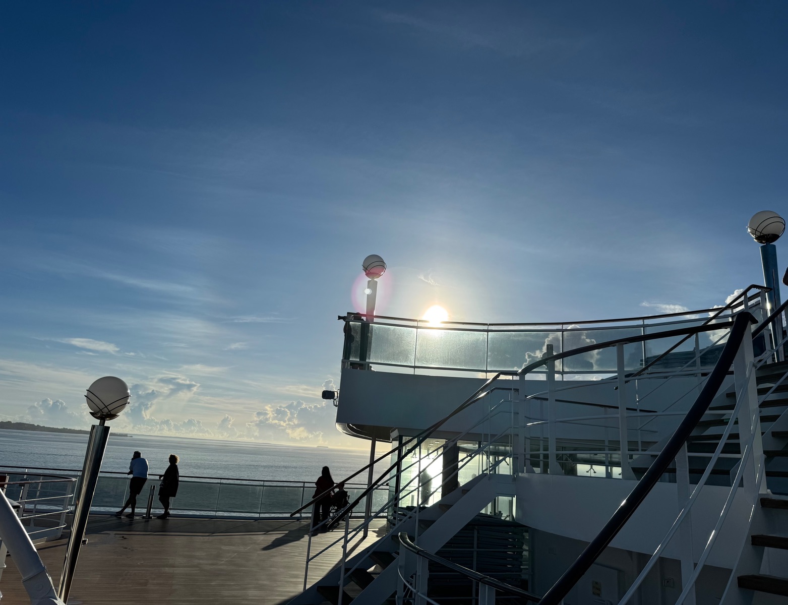 Für 8 Uhr war das Anlegen geplant, das bedeutete für uns, wie schon mehrfach gerne praktiziert, kurz vor 7 Uhr hinauf auf Deck 14 zu gehen, um die Einfahrt und das Anlegemanöver im Hafen mitzuerleben.