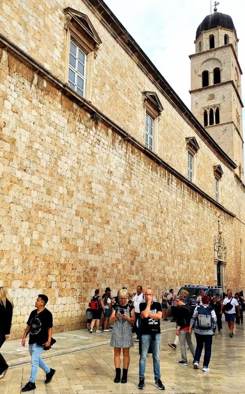 Hinter dem Brunnen war die Erlöserkirche zu erkennen, rechts davon der Beginn des Franziskanerklosters. Links von der Kirche kann man die Stadtmauer „besteigen“ und umrunden; Kosten zu diesem Zeitpunkt stolze € 35,-- p.P. Wir verzichteten darauf – die im Moment nicht fahrende Seilbahn reichte uns.