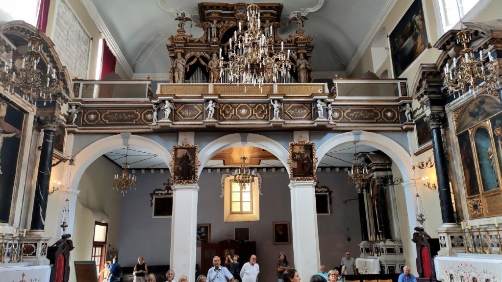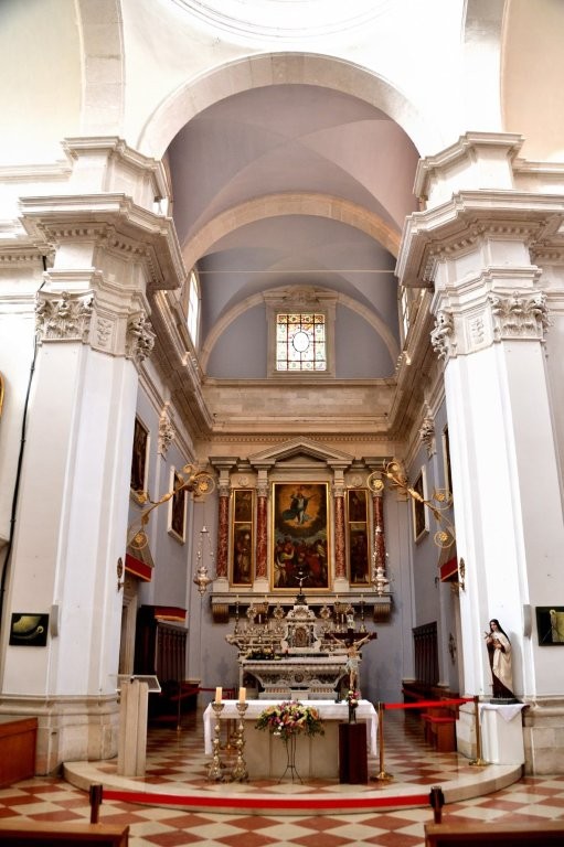 Wie wichtig, zeigt sich auch daran, dass man zunächst eine Freitreppe erklimmen muss, bevor man das Kircheninnere betritt. Die Kirche war vor 300 Jahren nach einem Brand im venezianisch barocken Stil neu gestaltet worden. Locker und verspielt sieht sie aus, was sich auch im Innenraum fortsetzt.