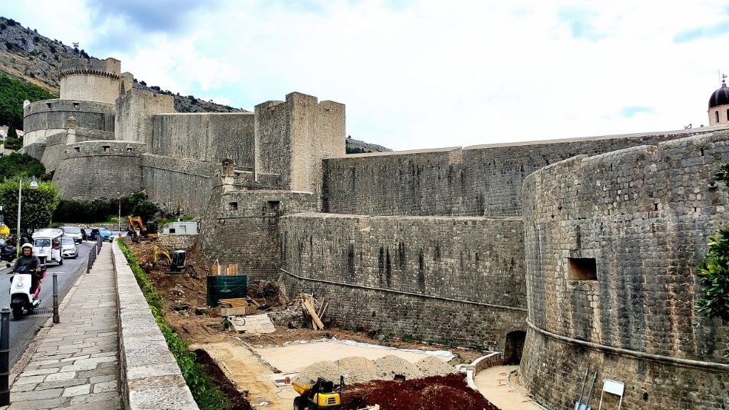 So, nach dem Frühstück stürmten wir den Bus, um unseren über Mein Schiff gebuchten Ausflug „Auf eigene Faust: Seilbahn, Hausberg Srdj & Shuttle“ zu starten. Wir verließen den voll besetzten Bus an dem mit zig anderen Bussen belegten Haltepunkt vor dem Pile-Tor. Und schon kam die große Enttäuschung: Bora veranlasste, dass die Seilbahn nicht fuhr. Also Programmänderung – nicht direkt zur Talstation der Seilbahn sondern zunächst Stadtbesichtigung in der Hoffnung, dass Bora Mitleid mit uns bekommen sollte. Nun aber los – hin zum Pile-Tor, seit 1979 UNESCO-Weltkulturerbe wie viele der Stätten, die wir während dieser 14tägigen Kreuzfahrt besucht hatten.