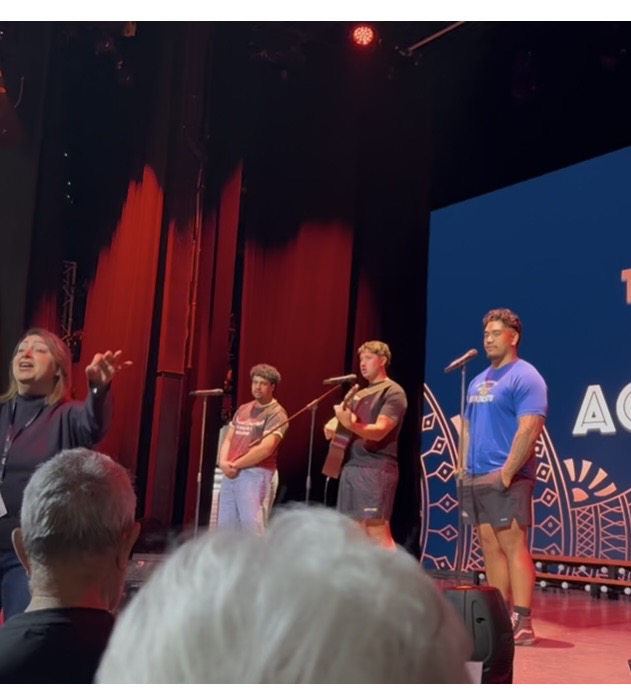 Um 12:15 Uhr Ortszeit fand das Treffen mit der Gruppe „Voices of Aotearoa“ und des Schola Cantorum Gäste-Chors (dem ich angehöre) im Theater zur Generalprobe statt.